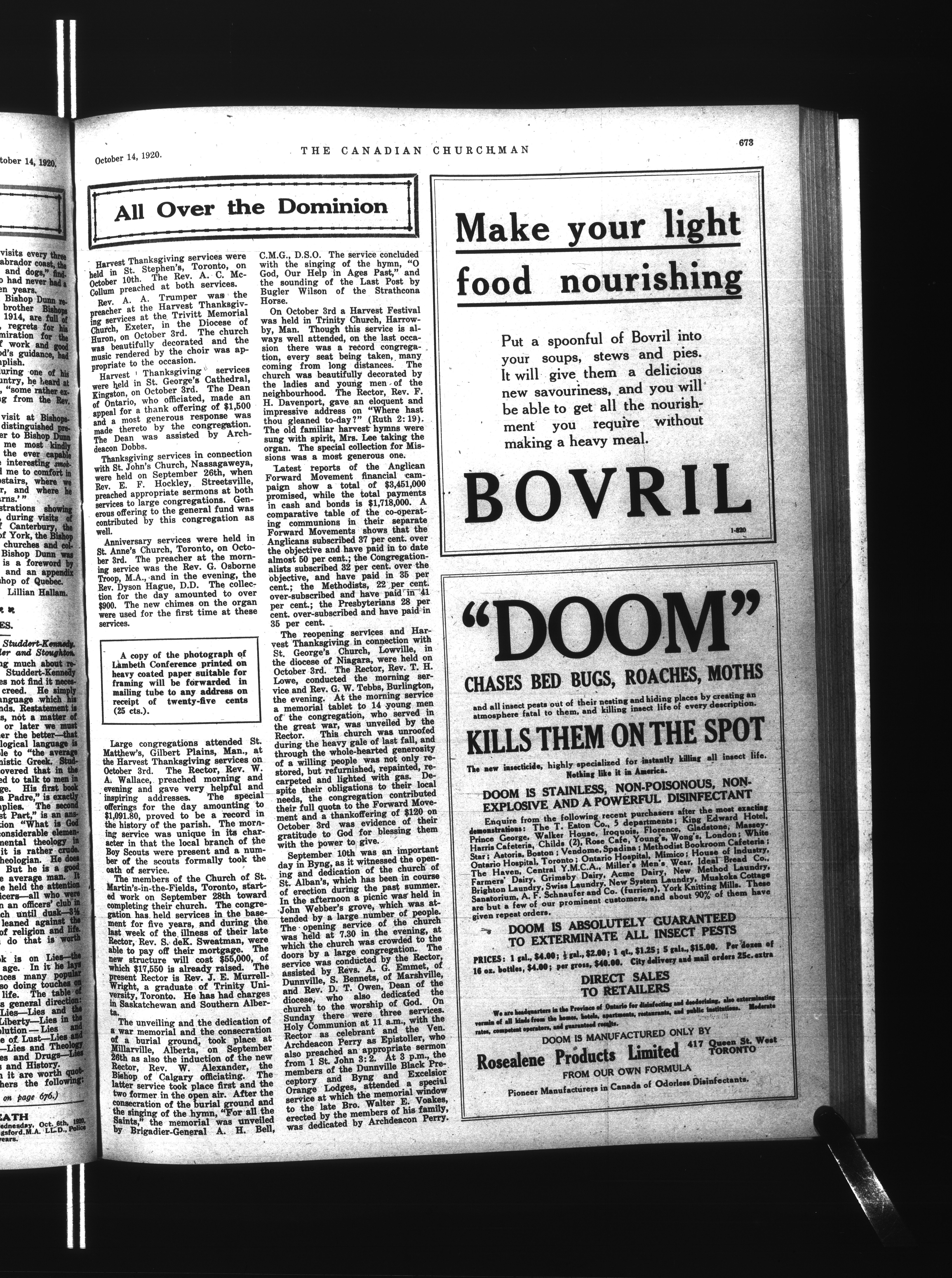 Canadian Churchman, Dominion Churchman and Church Evangelist : Vol. 47 No. 42 (October 14th, 1920)