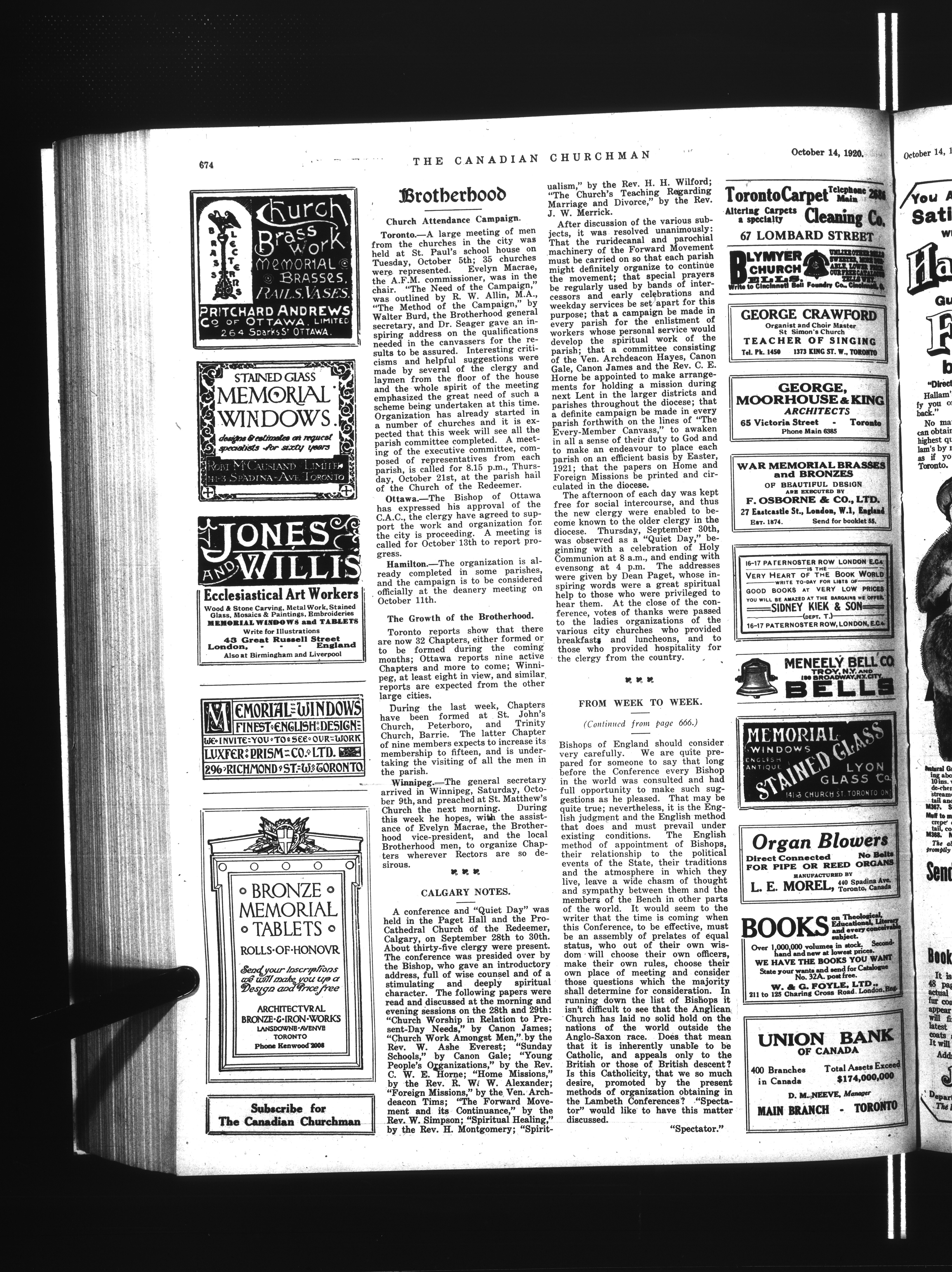 Canadian Churchman, Dominion Churchman and Church Evangelist : Vol. 47 No. 42 (October 14th, 1920)