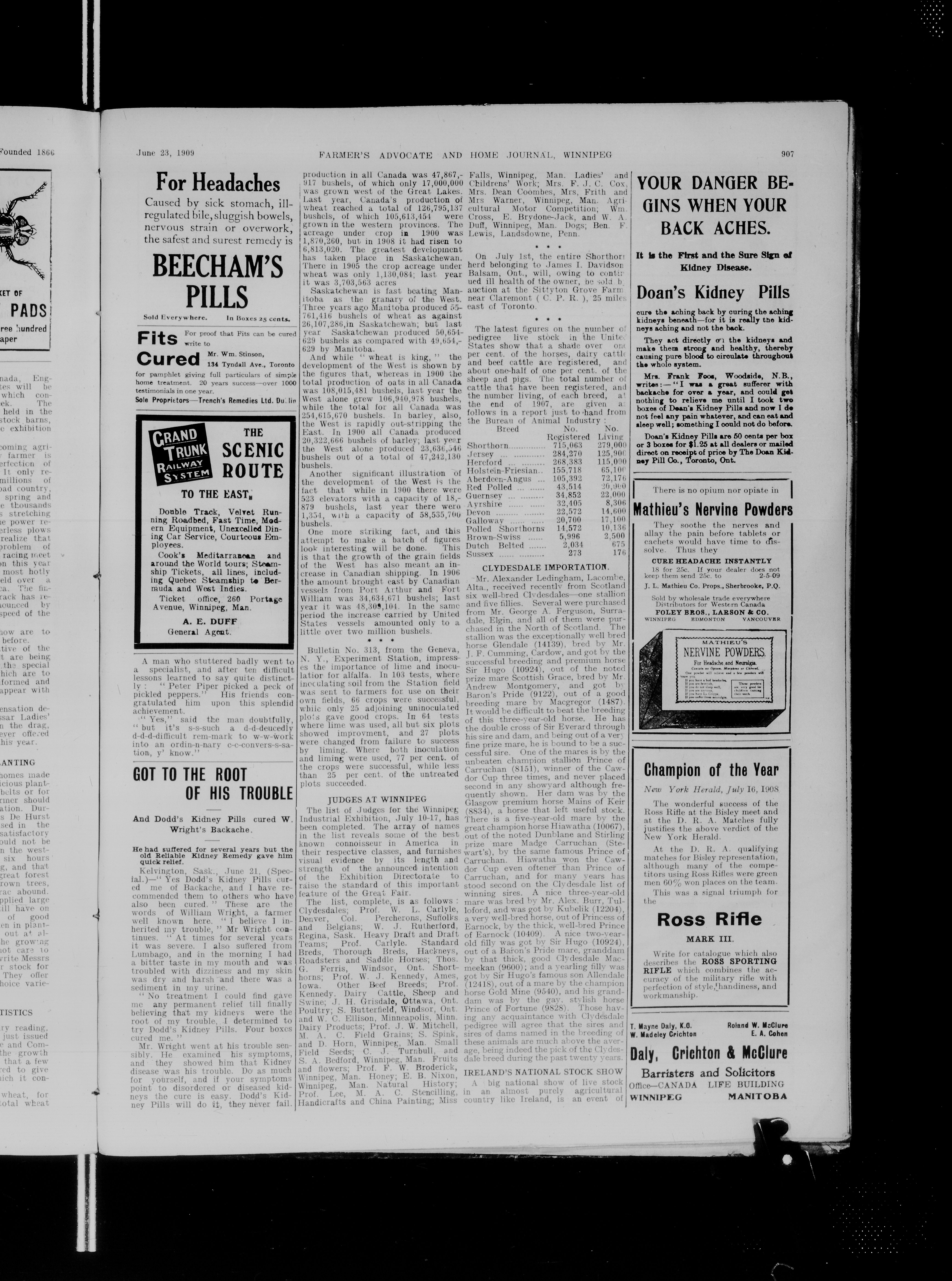 Farmer's advocate and home journal. : Vol. XLV, No. 874 (June 23, 1909.)