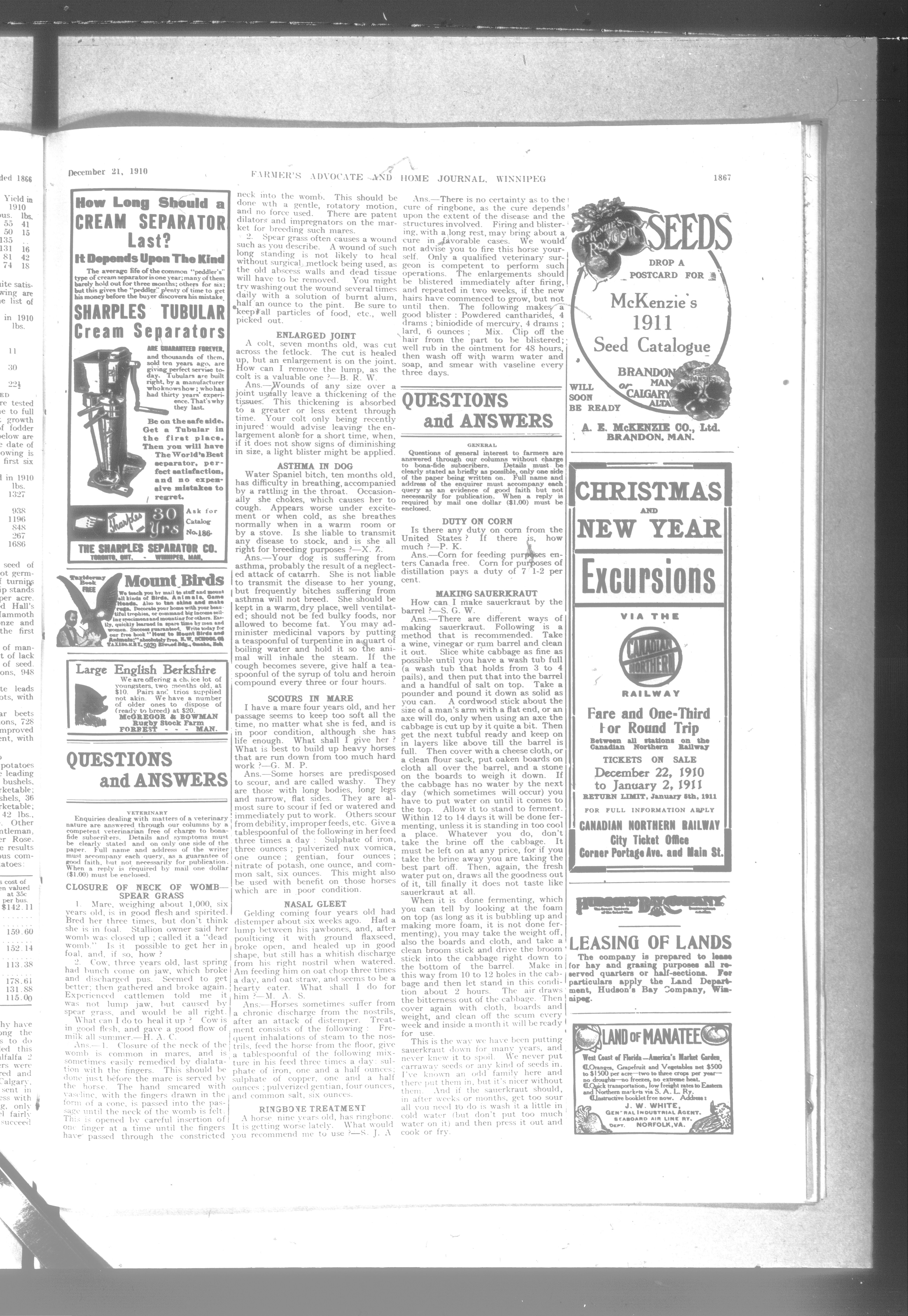 Farmer's advocate and home journal. : Vol. XLV No. 952 (December 21, 1910)