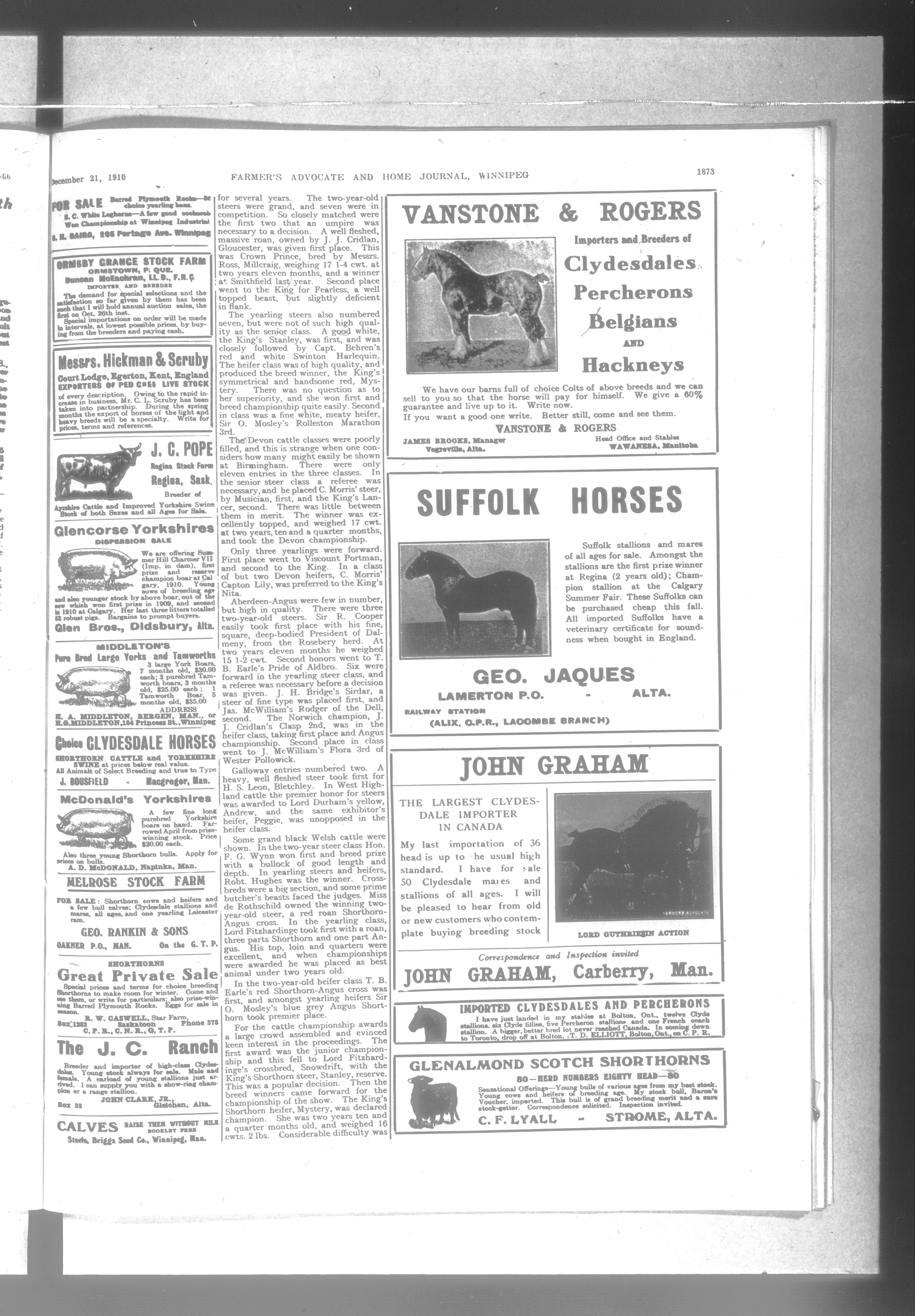 Farmer's advocate and home journal. : Vol. XLV No. 952 (December 21, 1910)