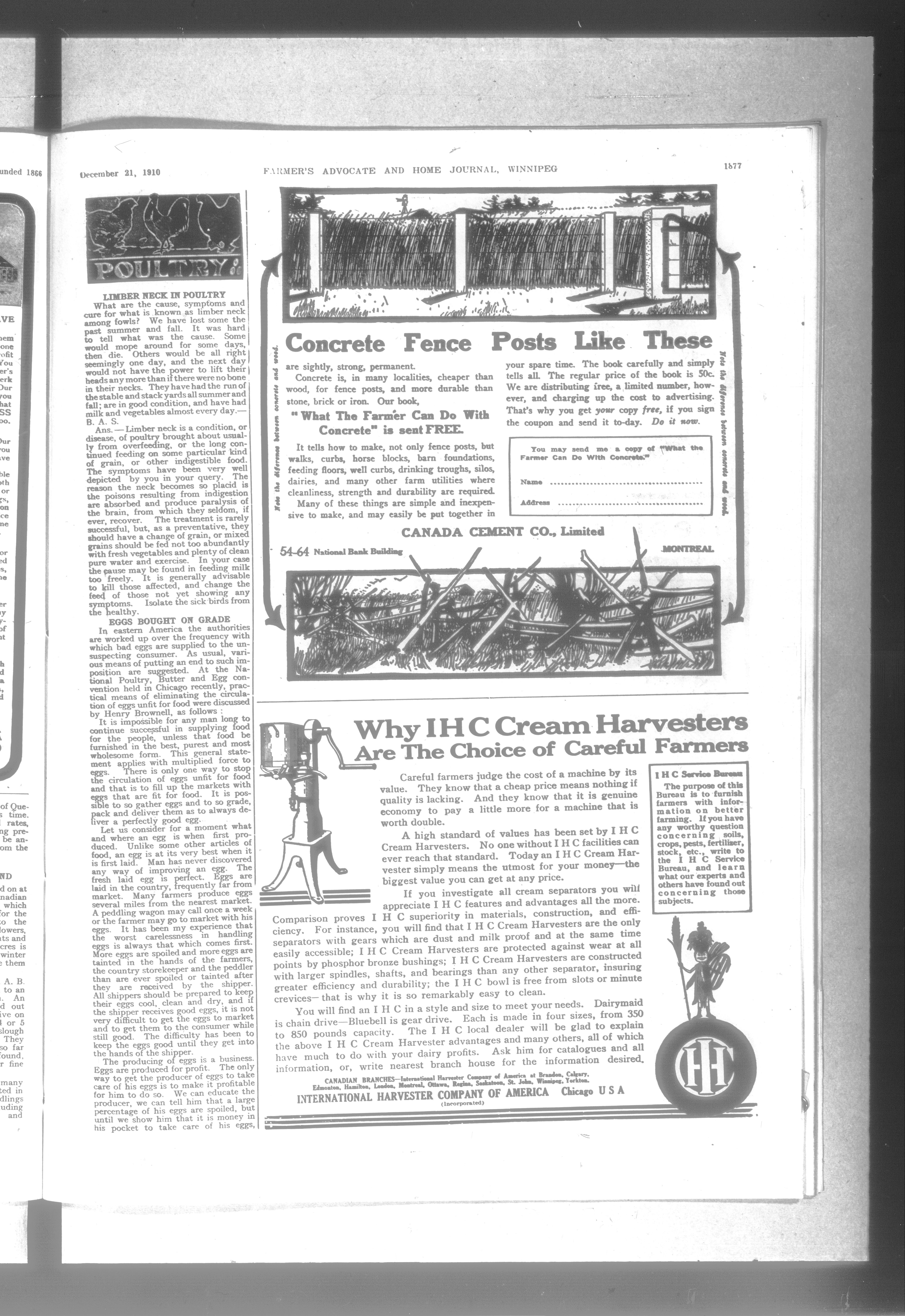 Farmer's advocate and home journal. : Vol. XLV No. 952 (December 21, 1910)
