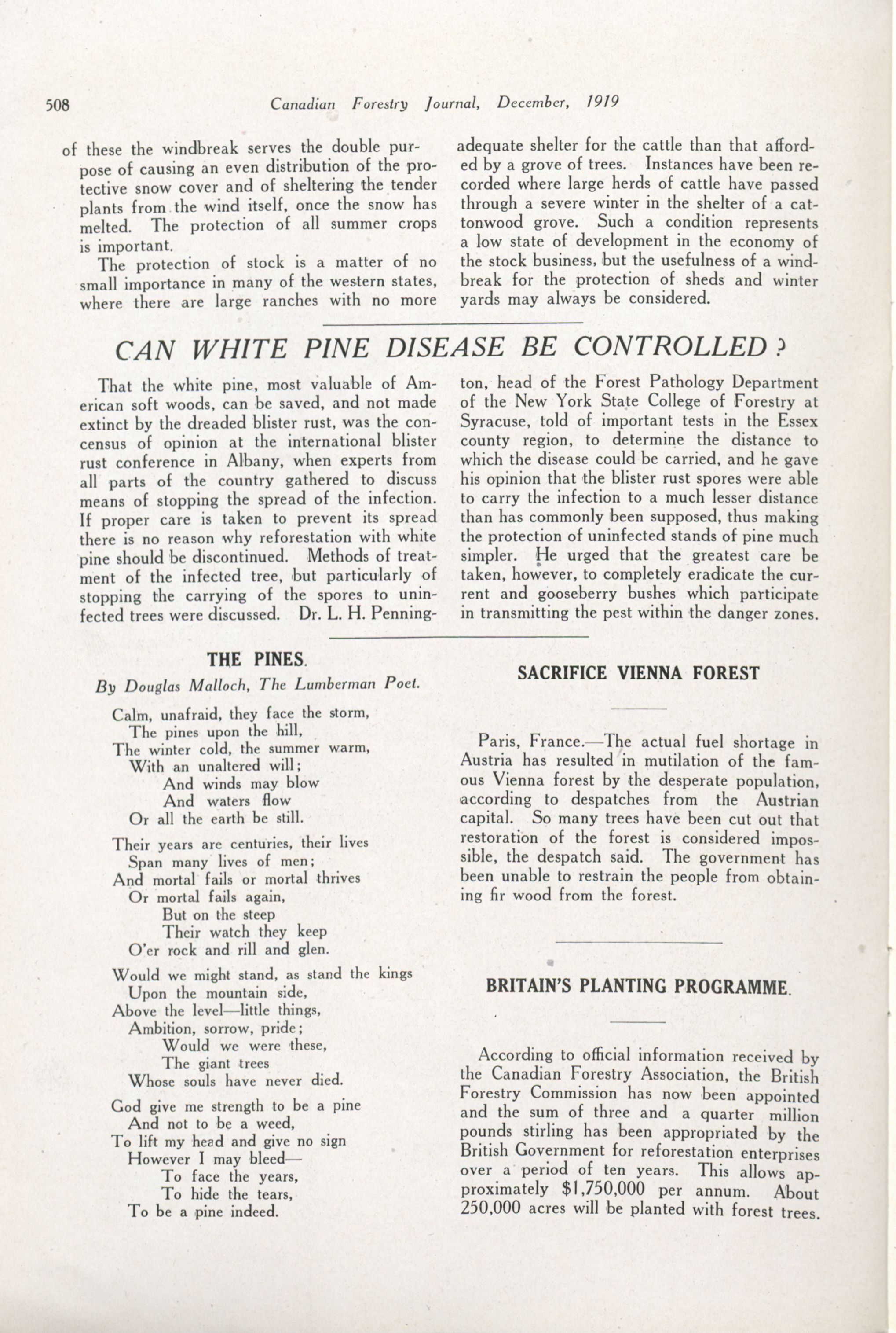 - Canadian Forestry Journal. : Vol. XV. No. 12 (December, 1919.)