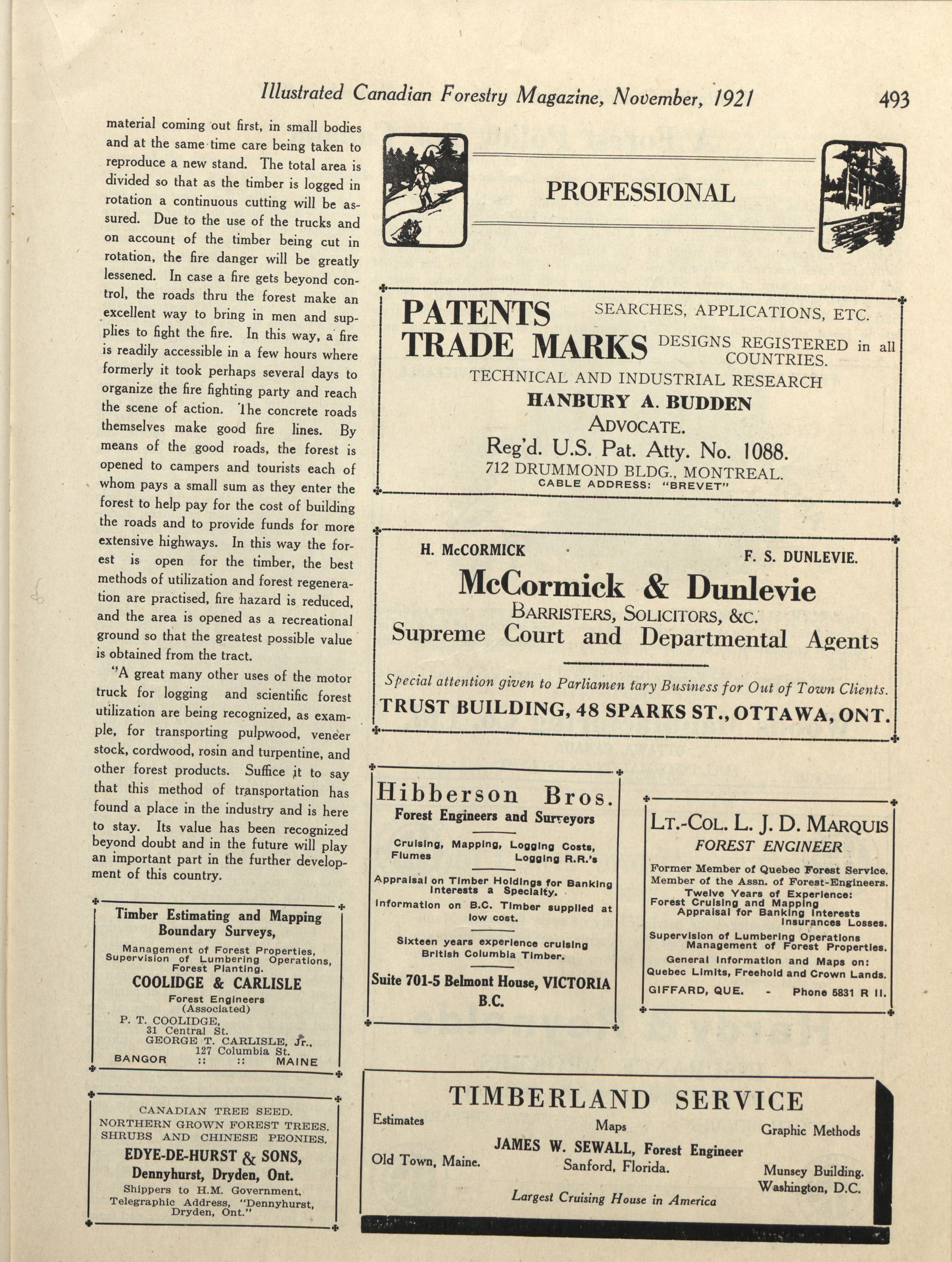 Illustrated Canadian Forestry Magazine. : Vol. XVII. No. 9 (November, 1921.)