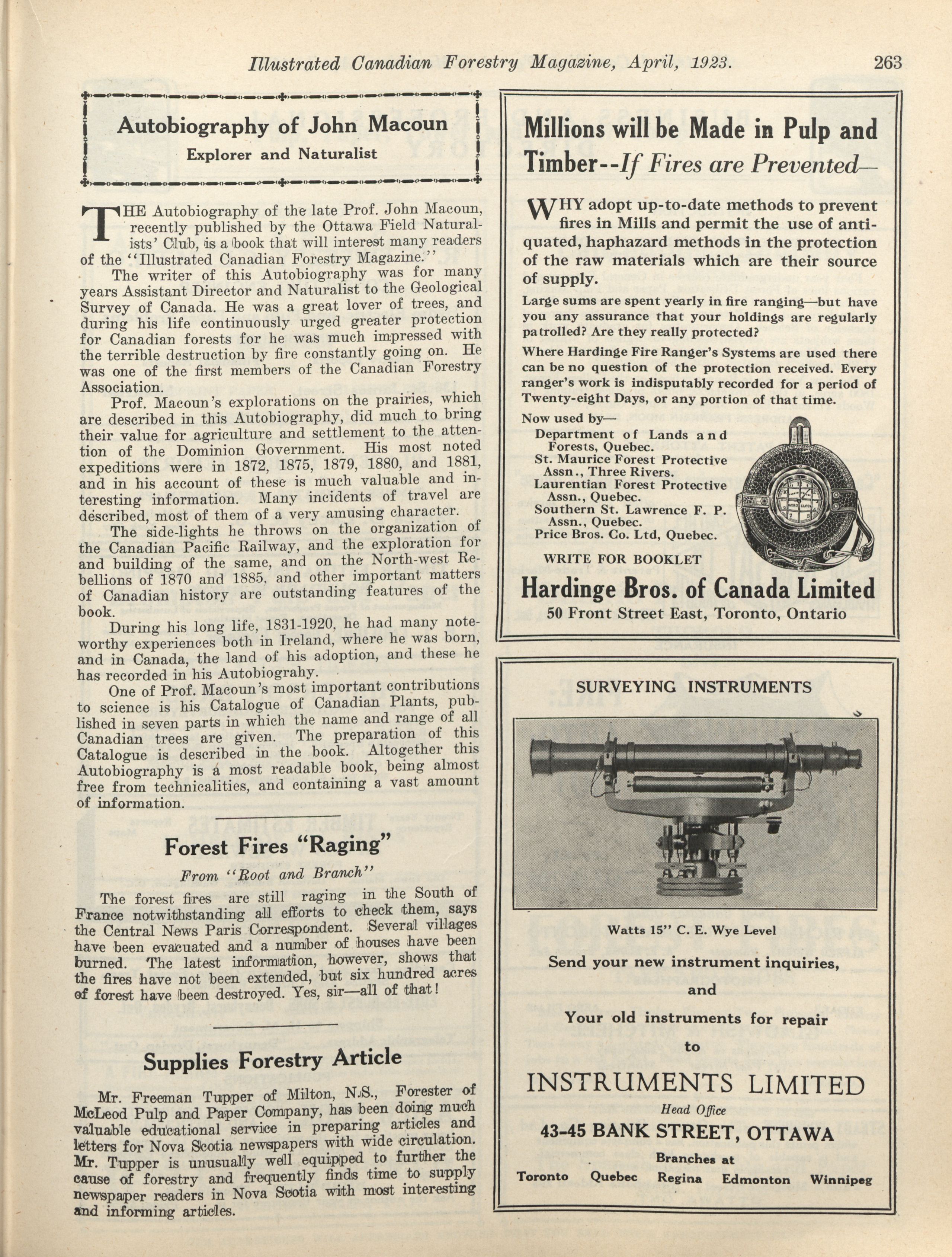 Illustrated Canadian Forestry Magazine. : Vol. XIX No. 4 (April, 1923)
