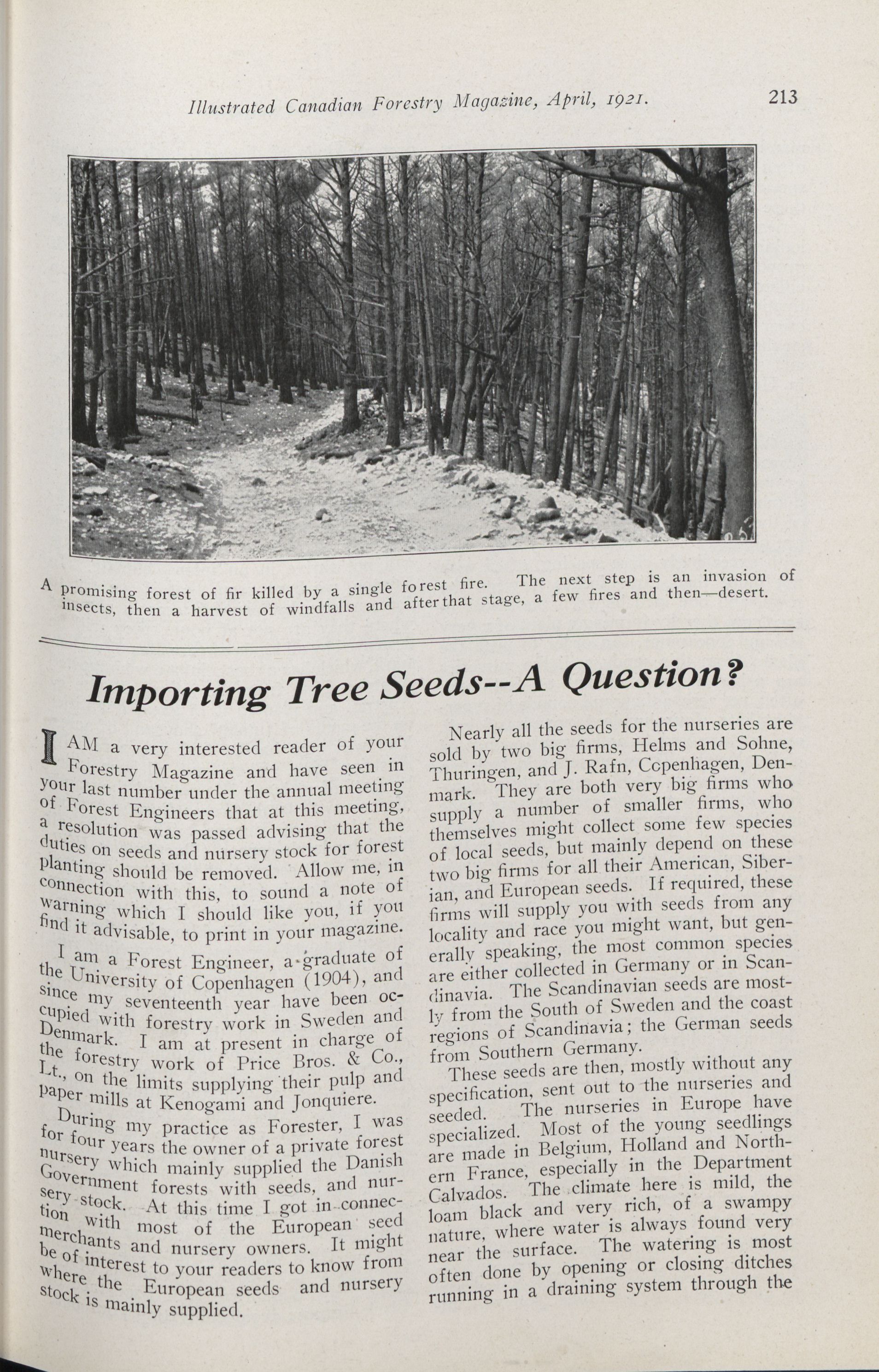 Illustrated Canadian Forestry Magazine. : Vol. XVII. No. 4 (April, 1921)