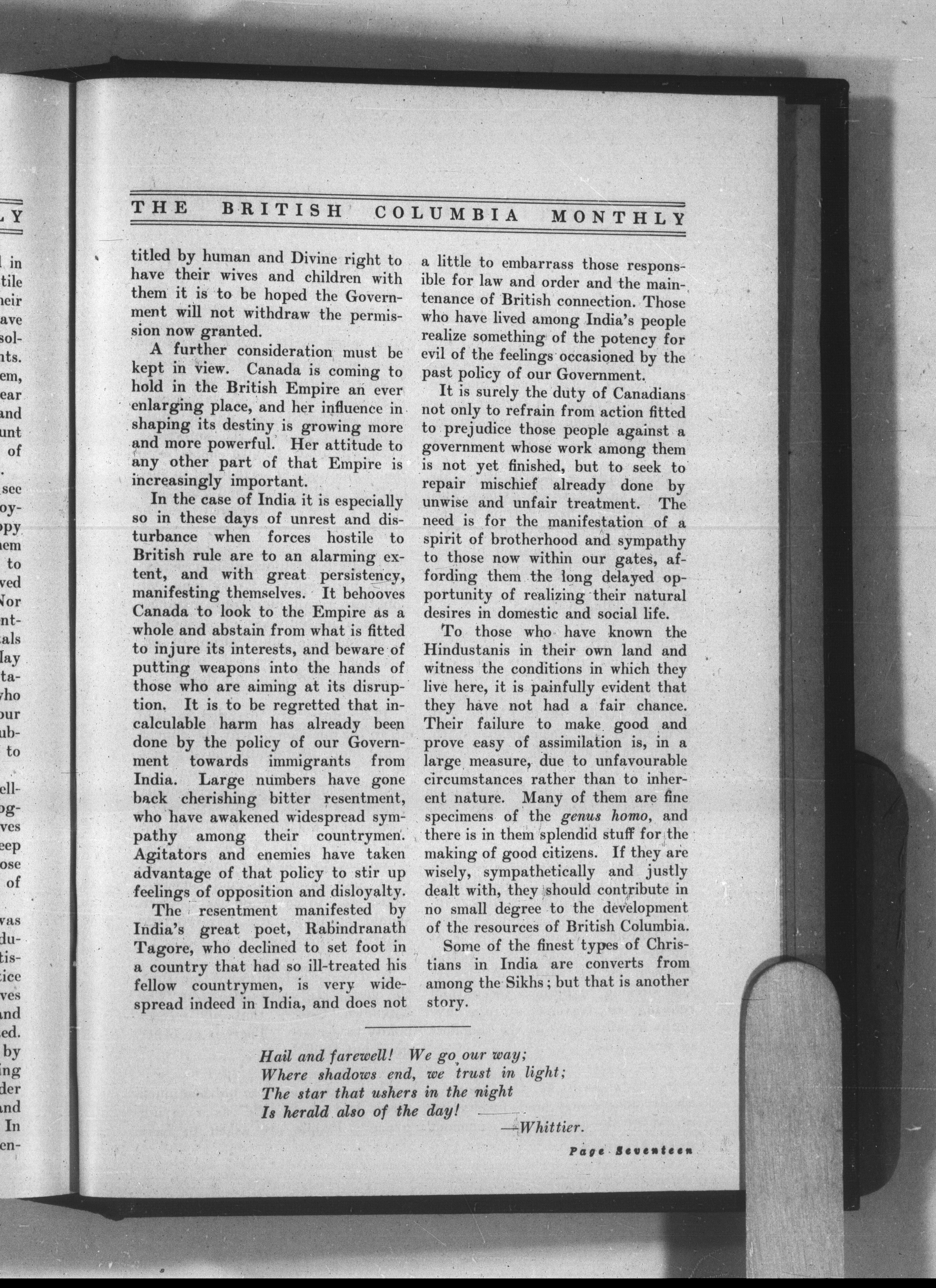 British Columbia monthly : Vol. XV, No. 1 (April 1919)