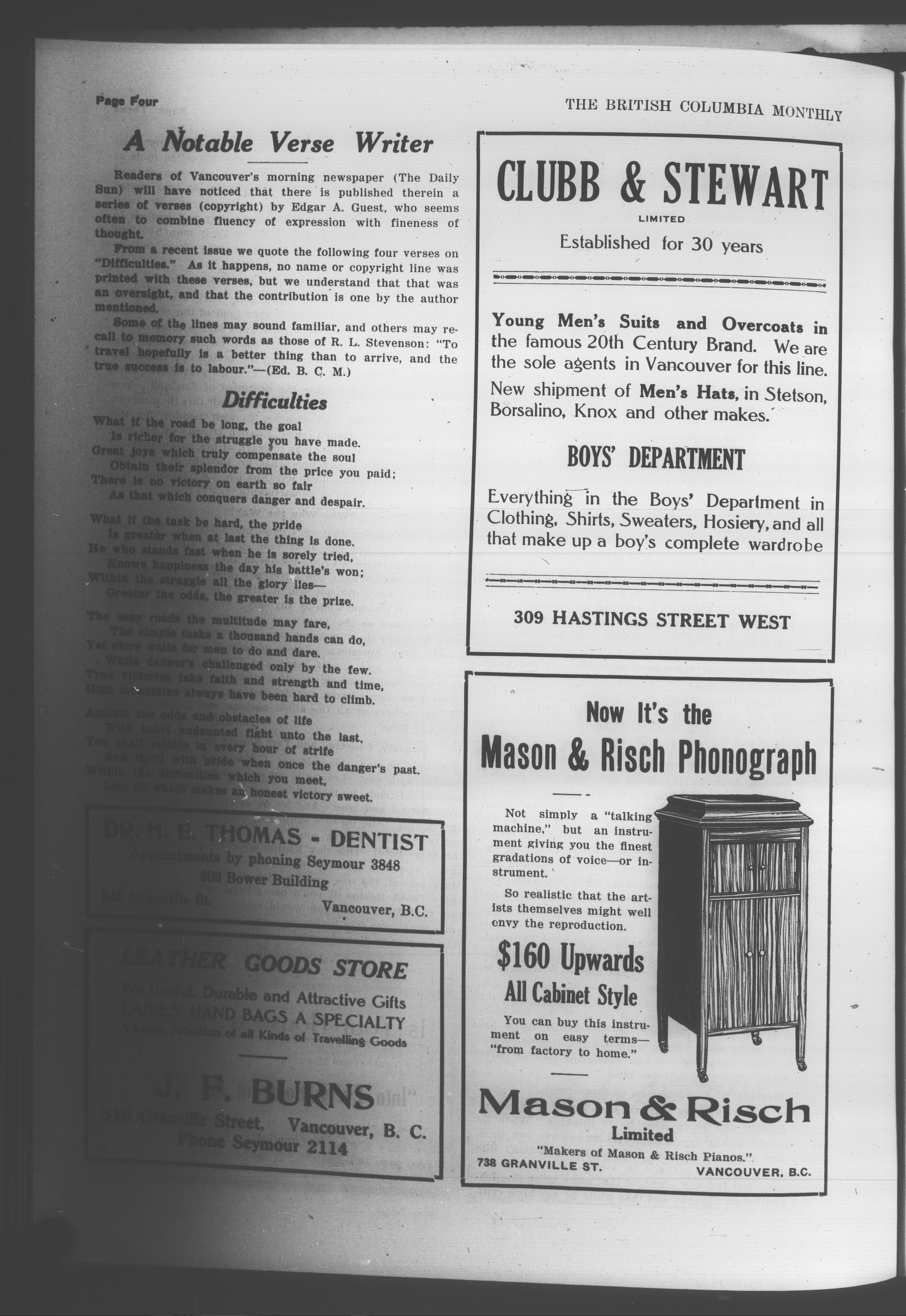 British Columbia monthly : Vol. XVI, No. 5 (August 1920)