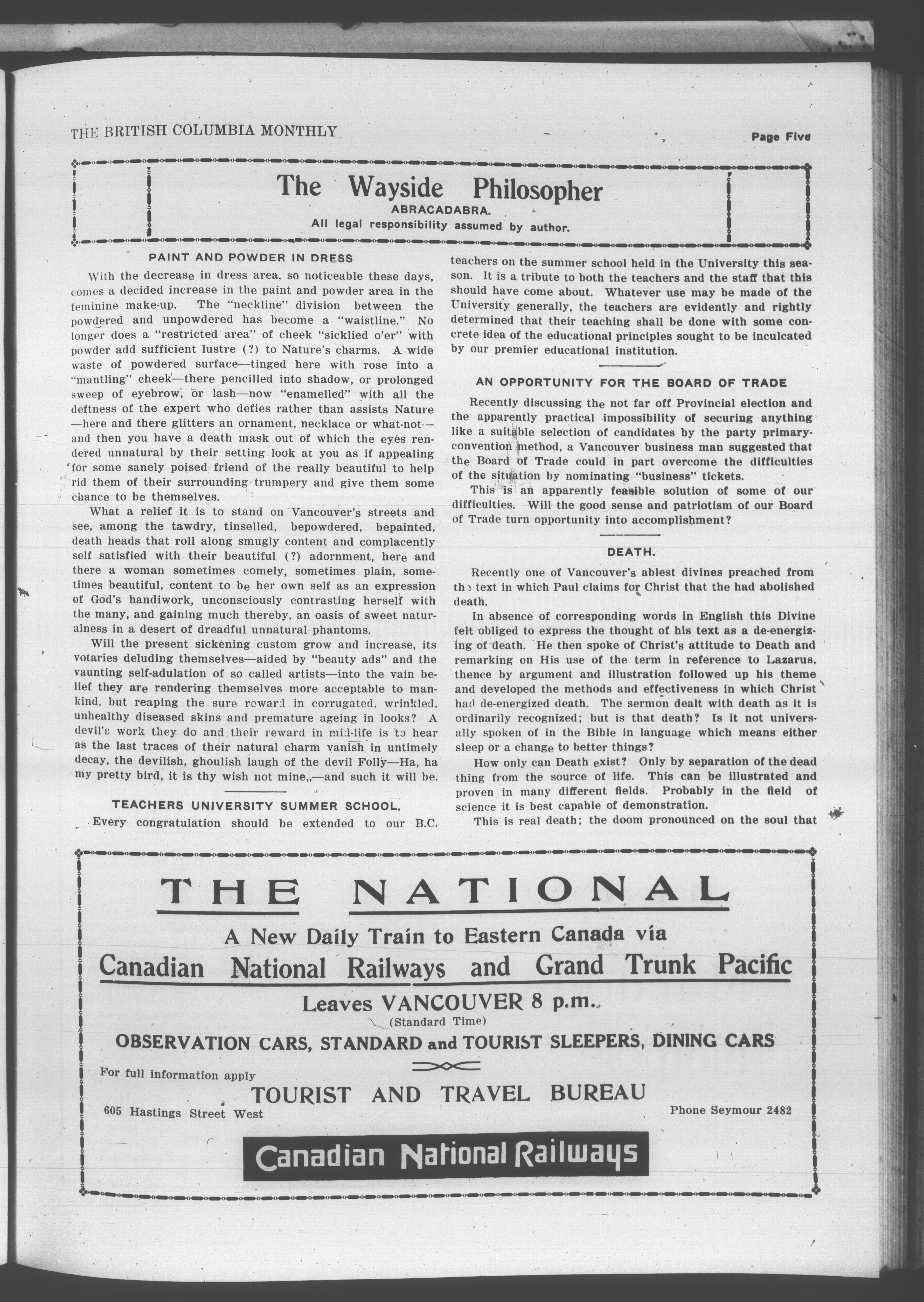 British Columbia monthly : Vol. XVI, No. 5 (August 1920)