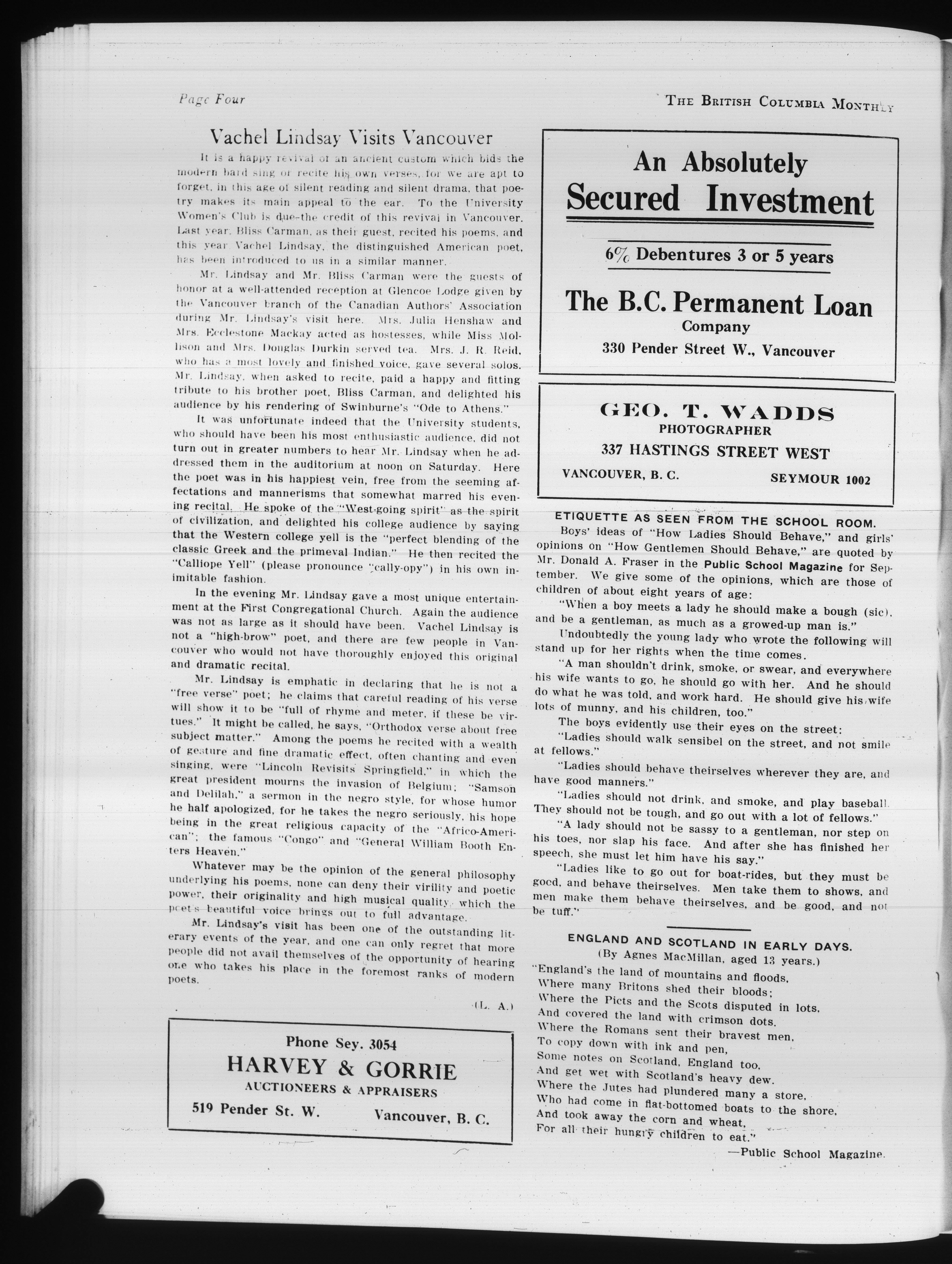 British Columbia monthly : Vol. XX, No. 1 (November 1922)