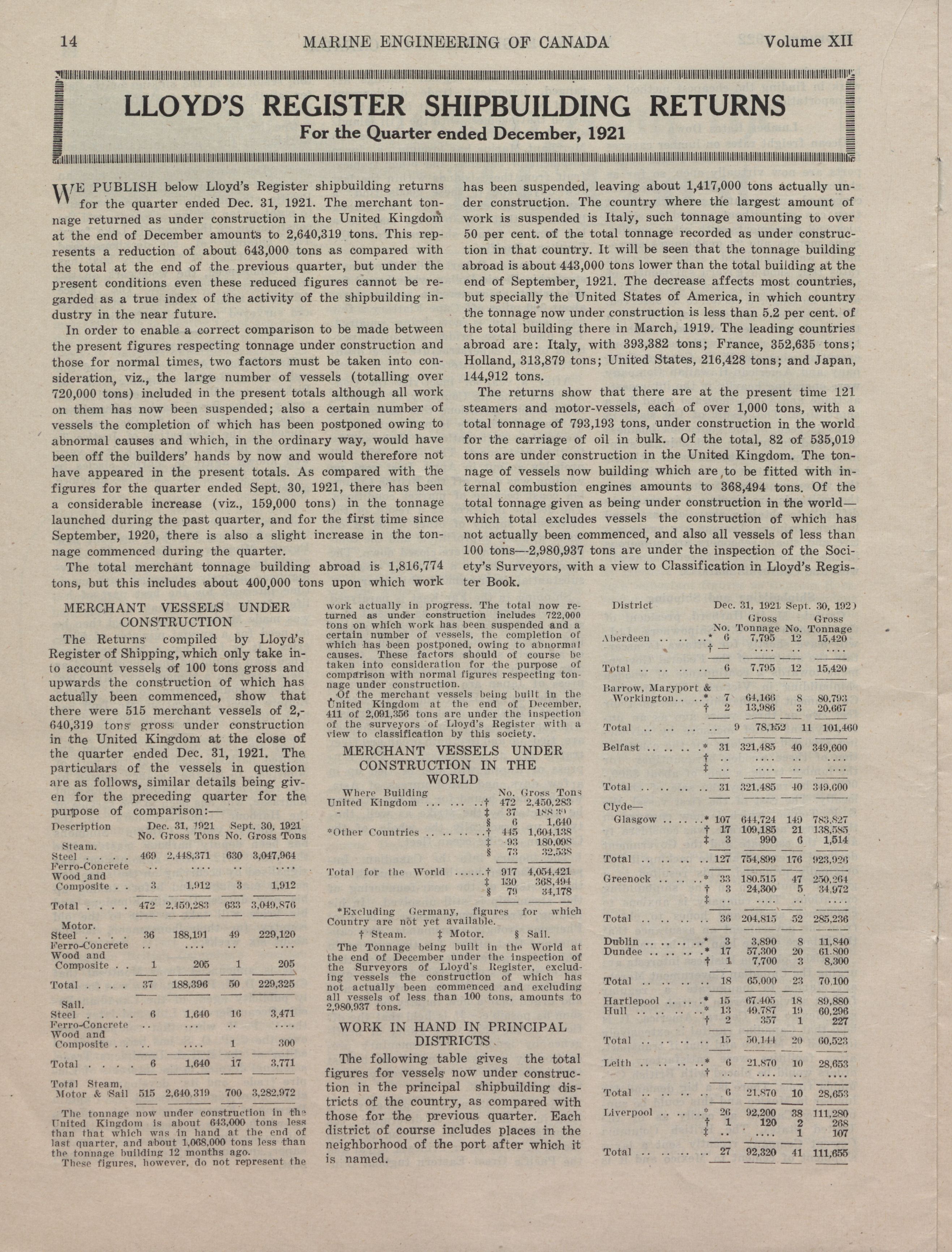 Marine engineering of Canada. : Volume XII, No. 2 (February, 1922)