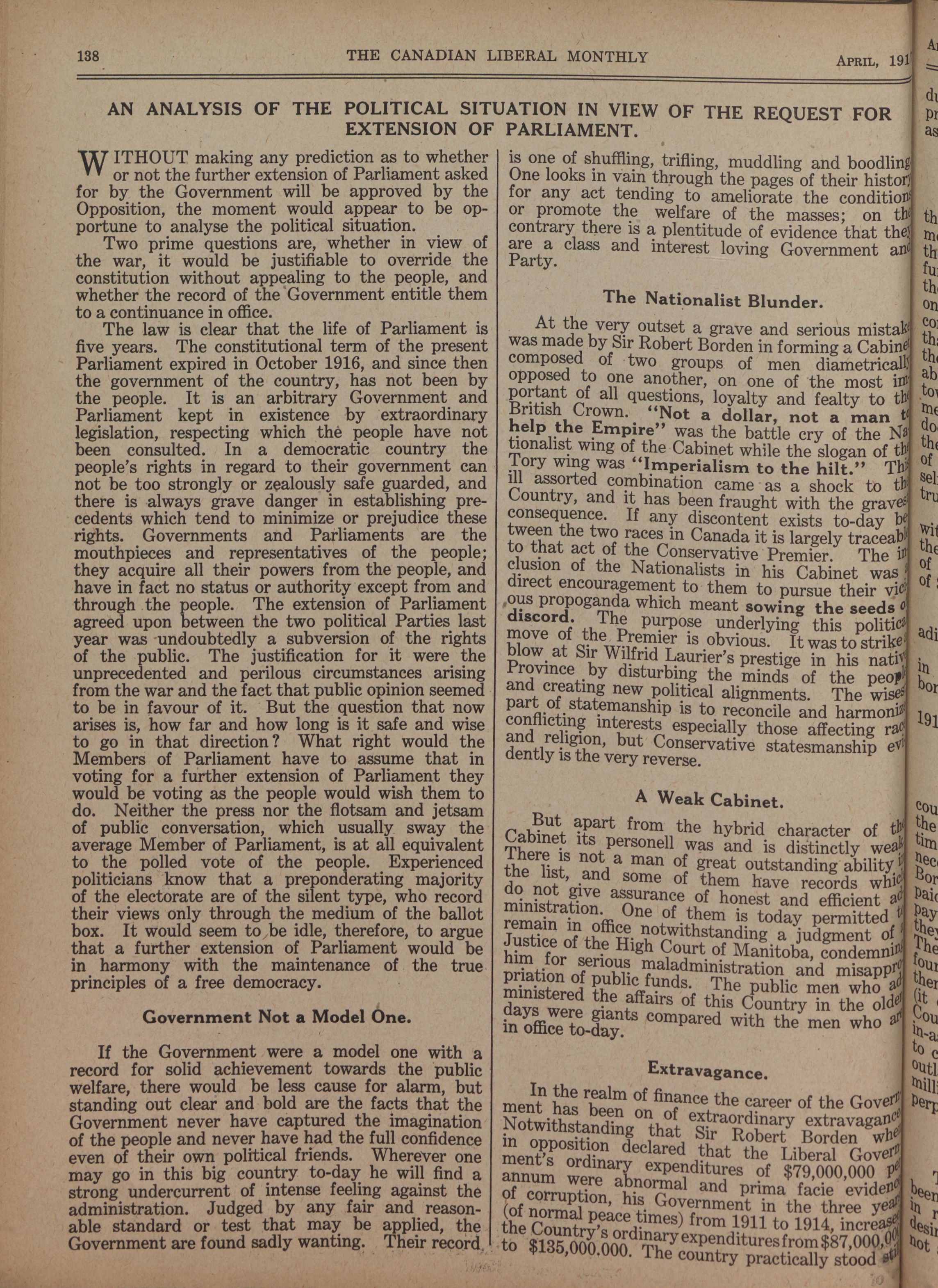 The Canadian Liberal monthly : Vol. IV, No. 8 (April 1917)
