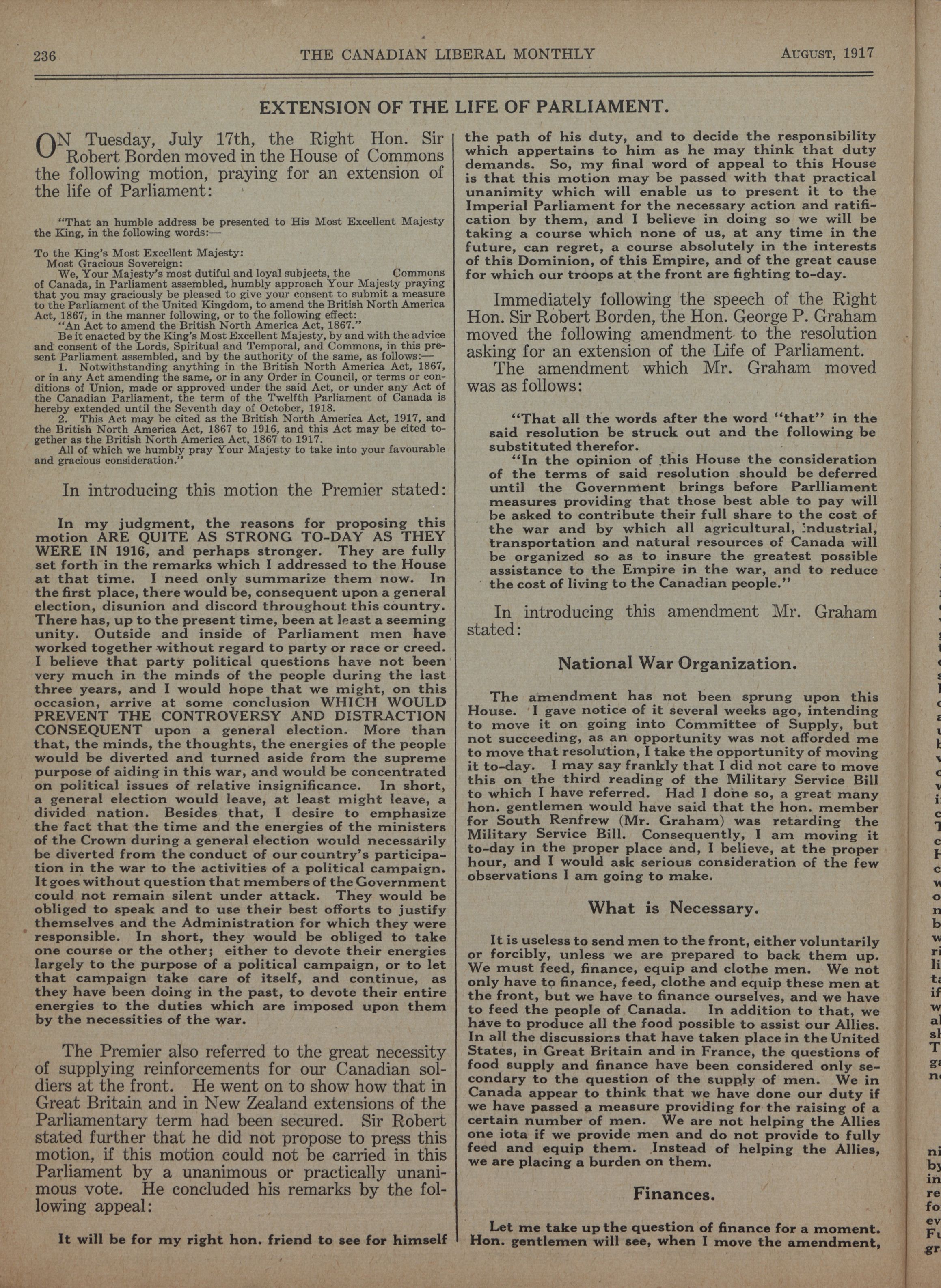 The Canadian Liberal monthly : Vol. IV, No. 12 (August 1917)
