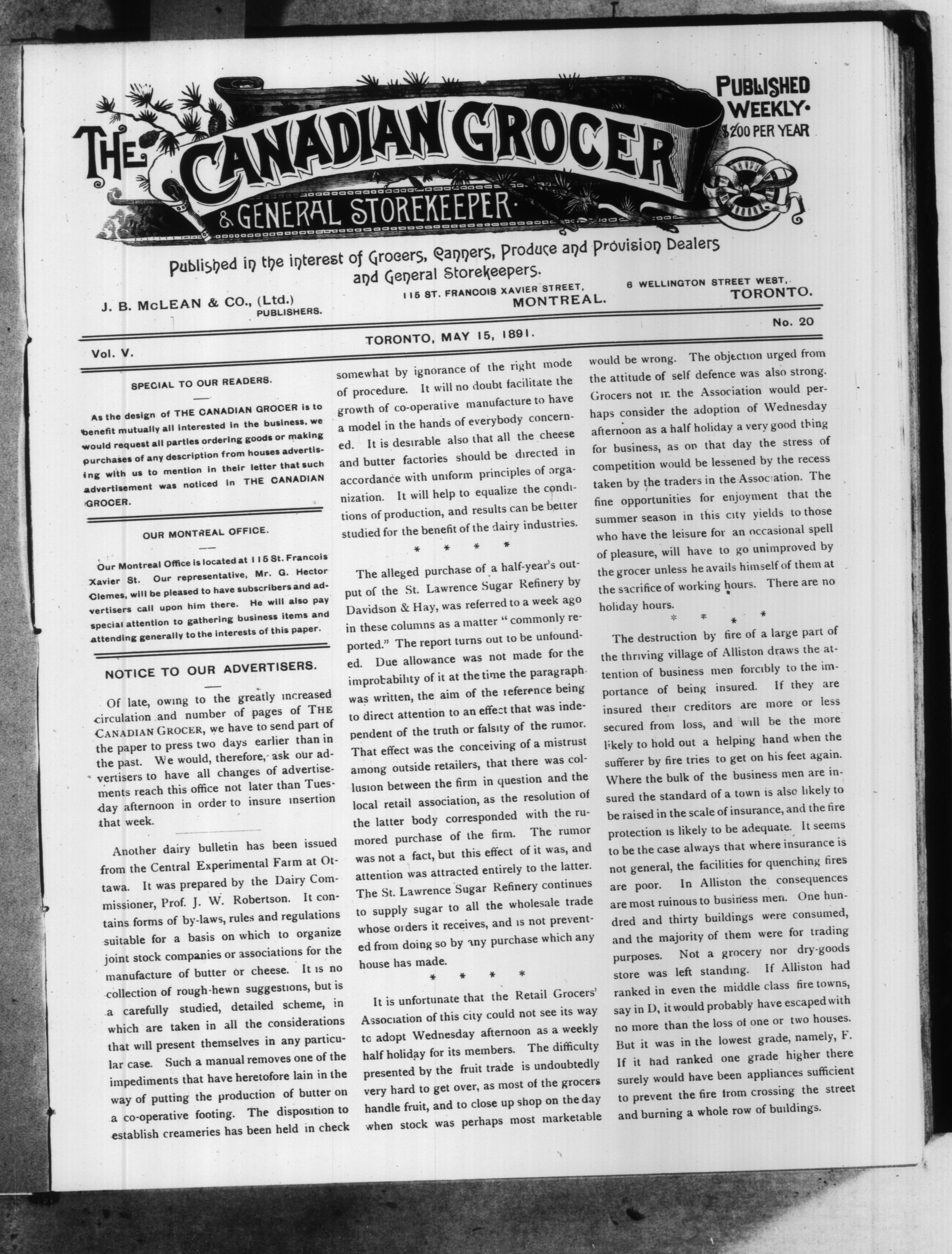 The Canadian grocer & general storekeeper : Vol. V, No. 20 (May 15, 1891)