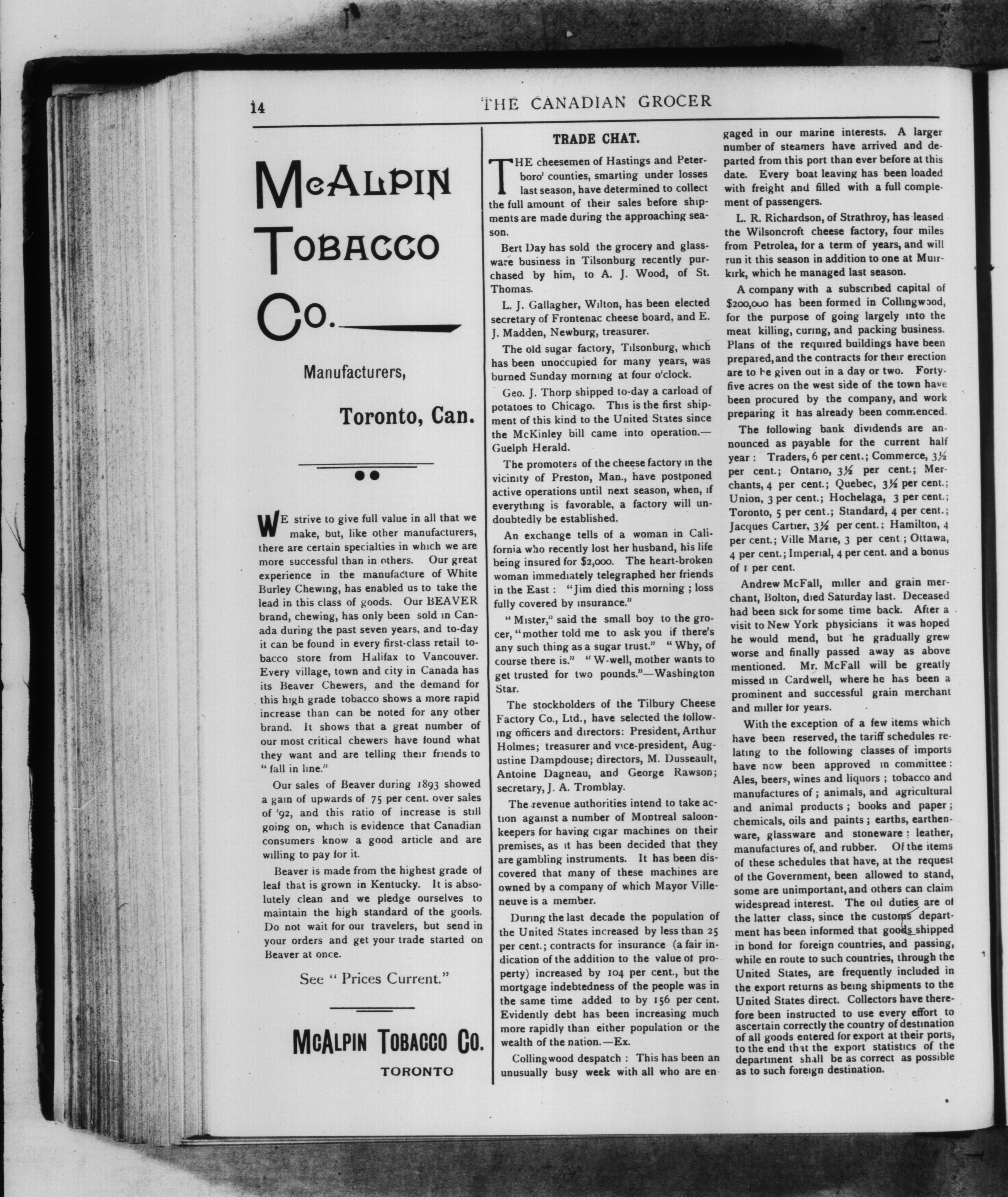 The Canadian grocer & general storekeeper : Vol. VIII, No. 18 (May 4, 1894)