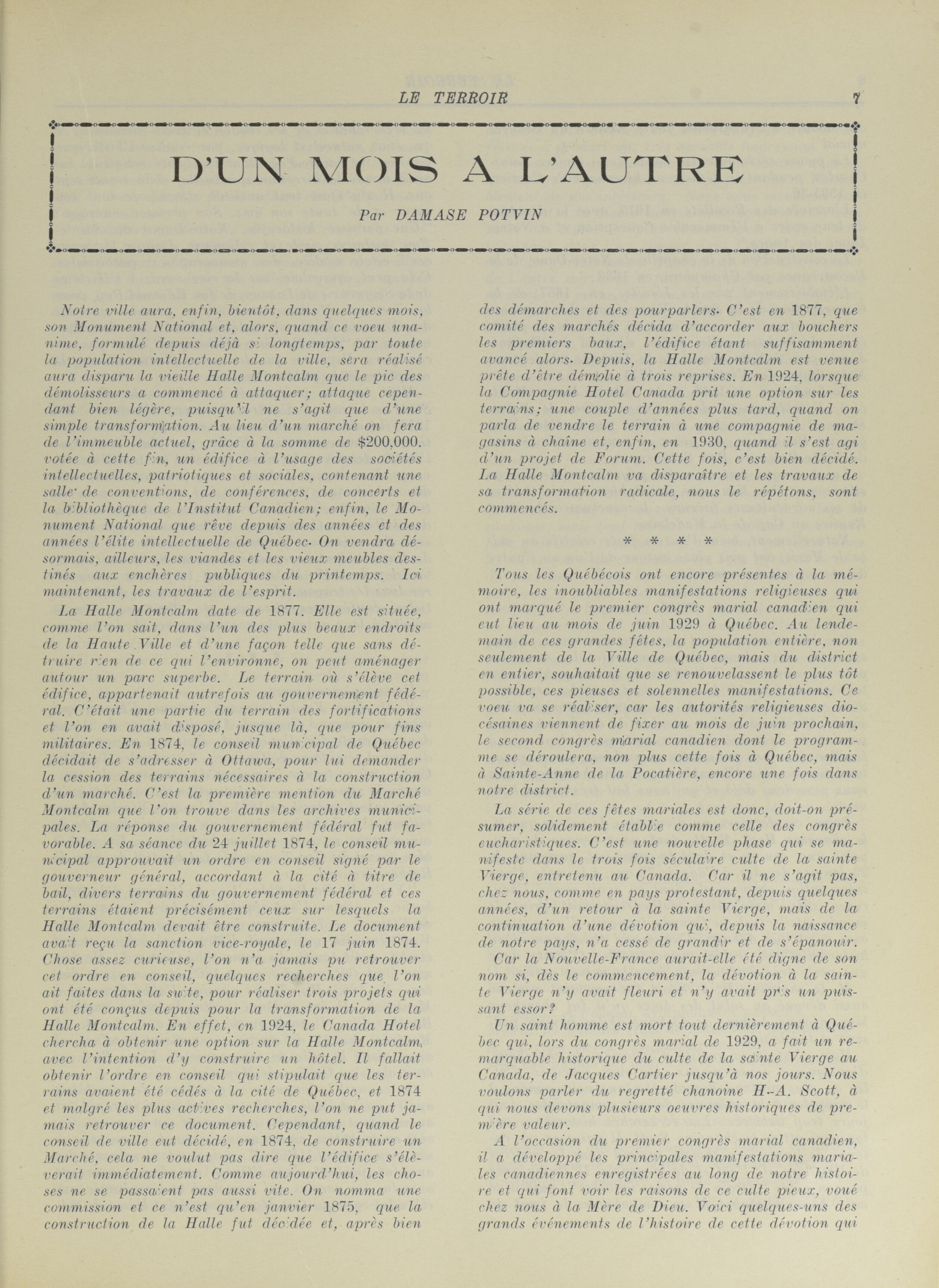 Le Terroir. : Le Terroir : Vol. XI, No 10 (mars 1931)