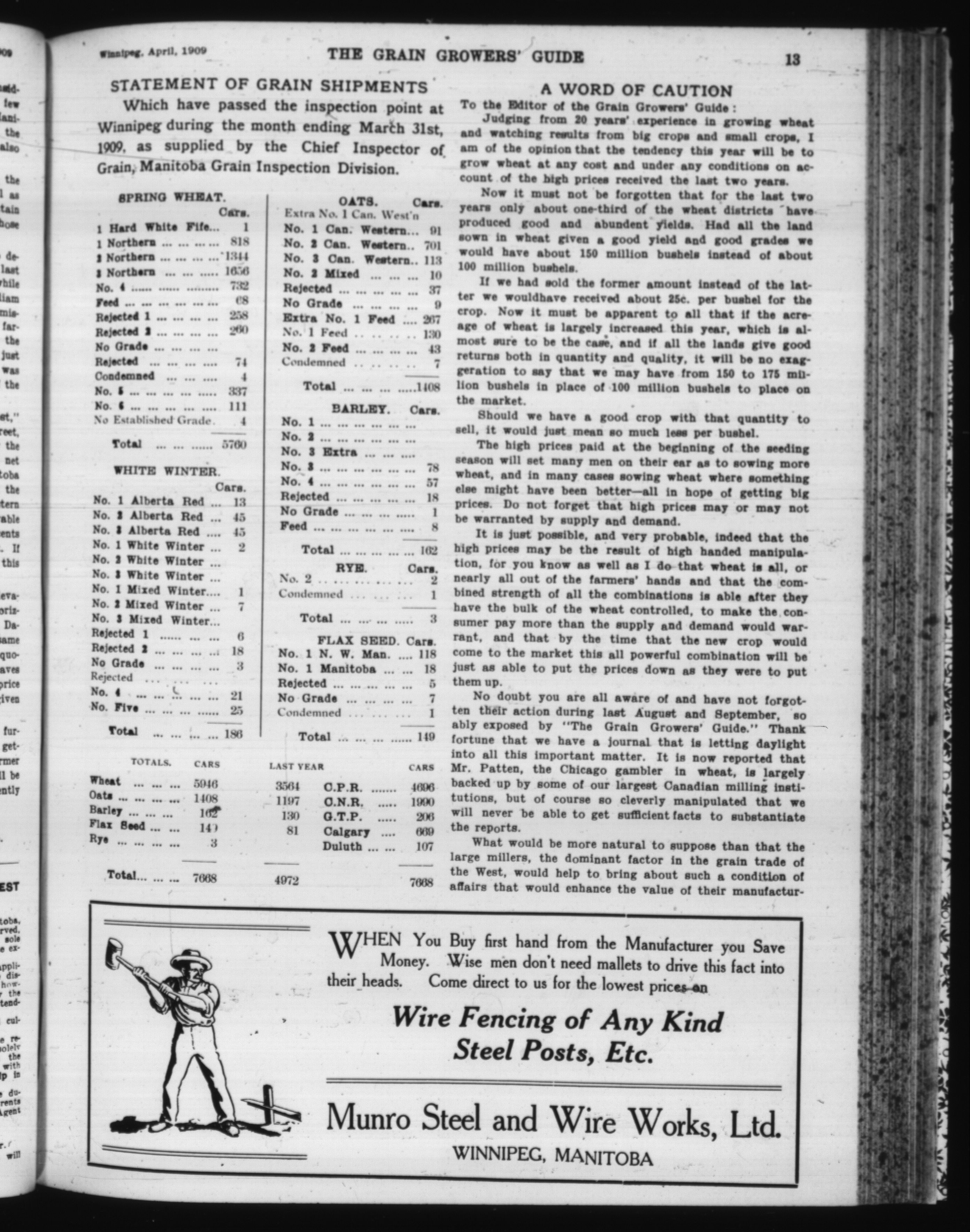 The Grain growers' guide : Vol. 1, No. 10 (April 1909)