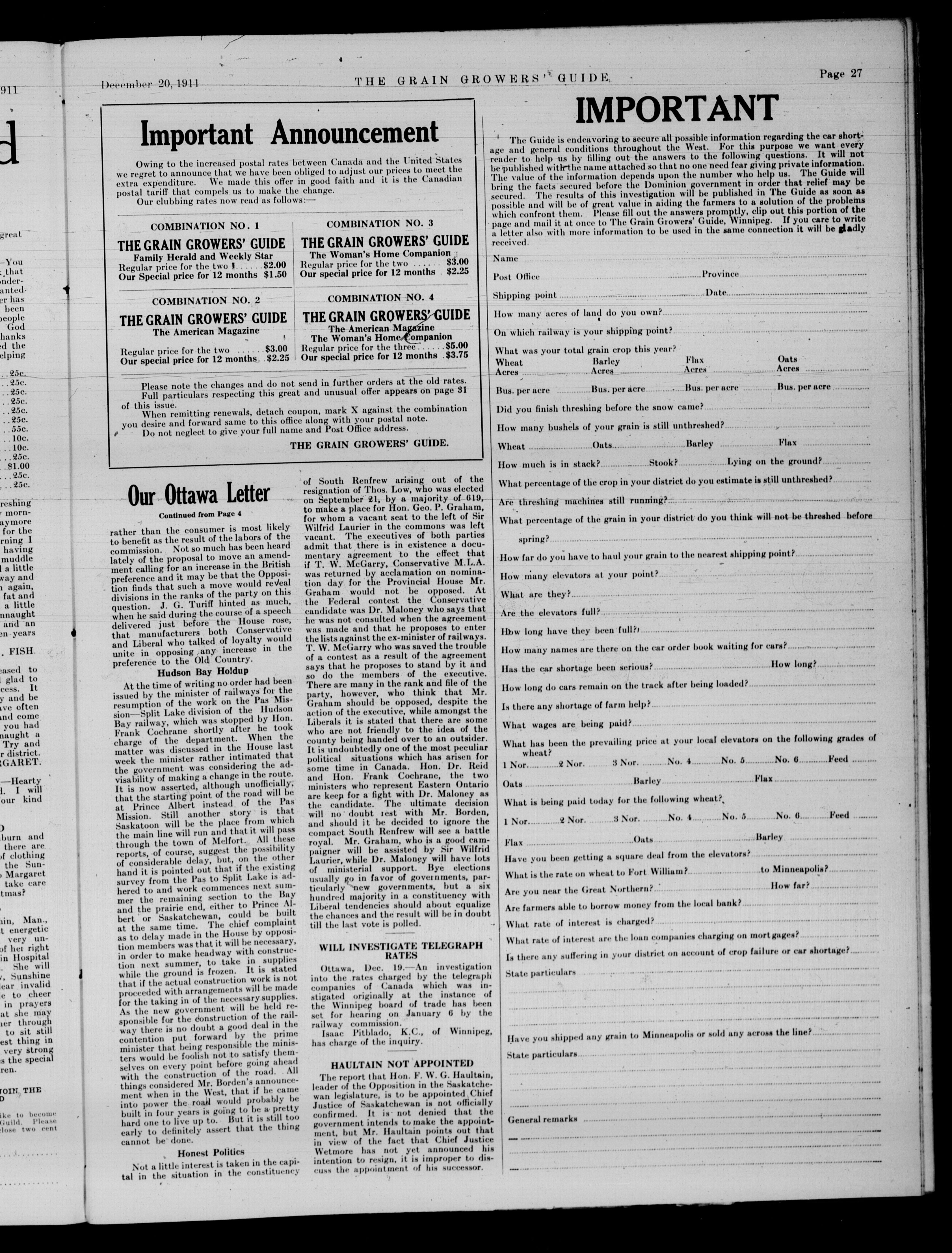 The Grain growers' guide : Volume IV, Number 21 (December 20, 1911)