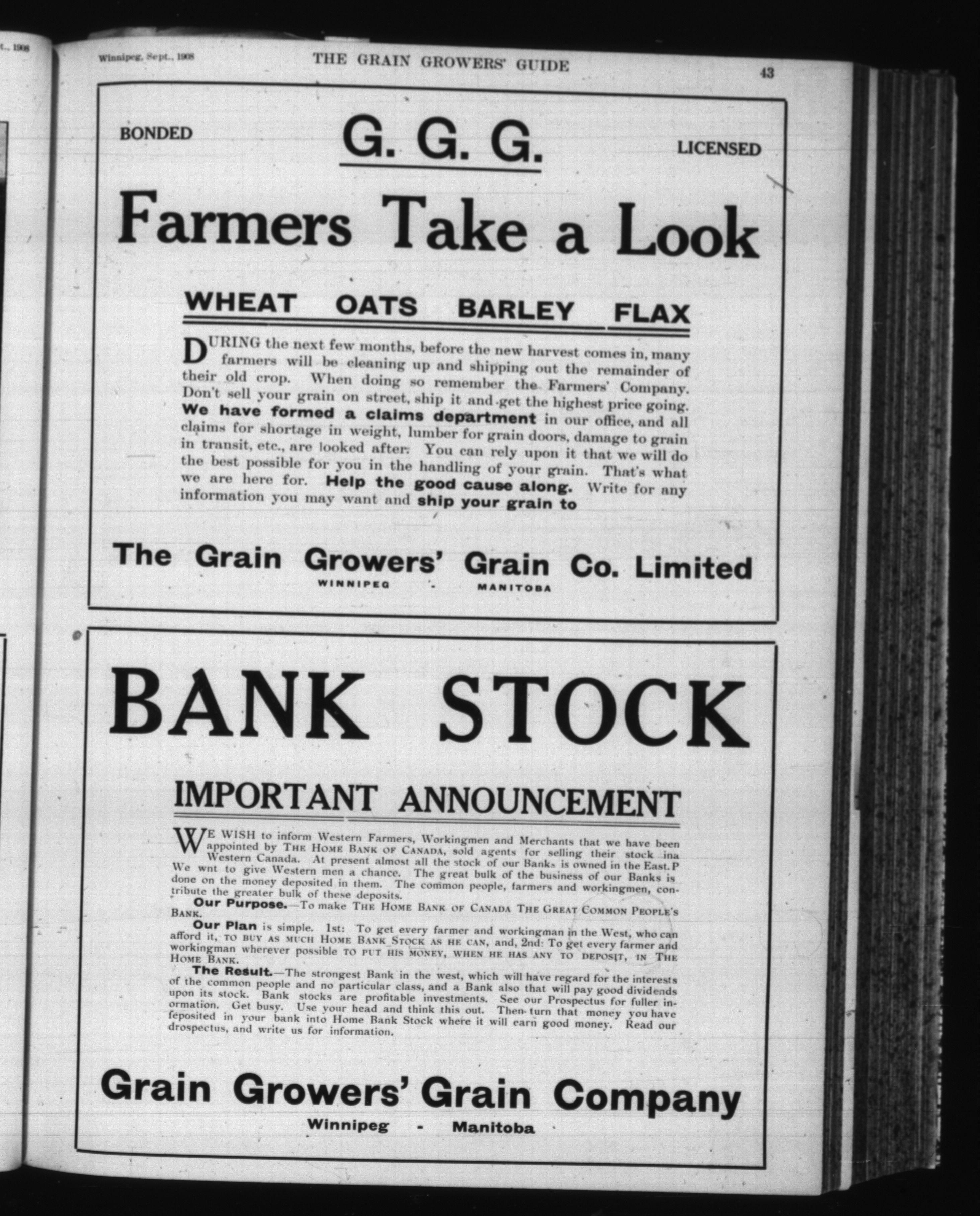 The Grain growers' guide : Vol. 1, No. 3 (Sept. 1908)