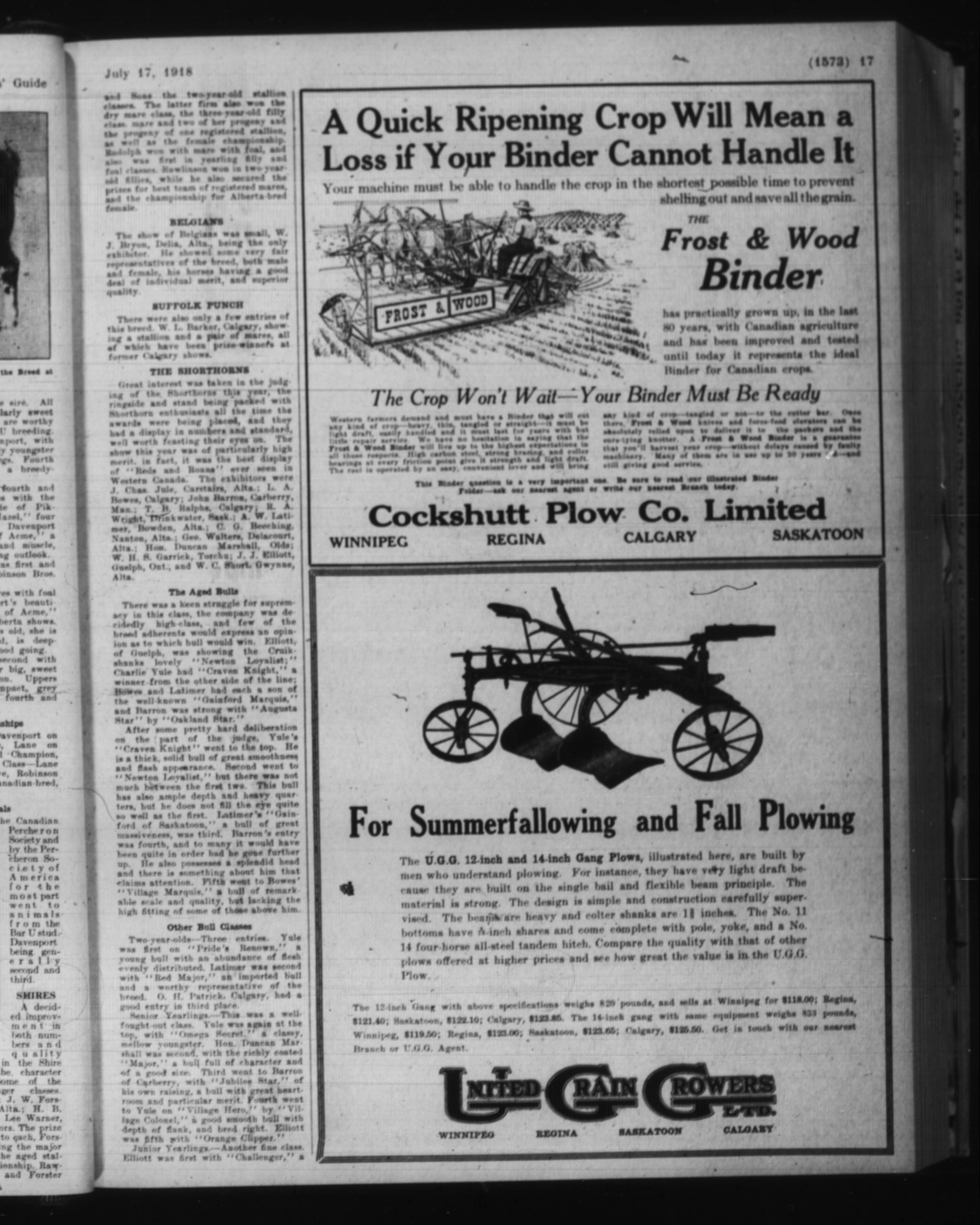 The Grain growers' guide : Vol. XI, No. 29 (July 17, 1918)