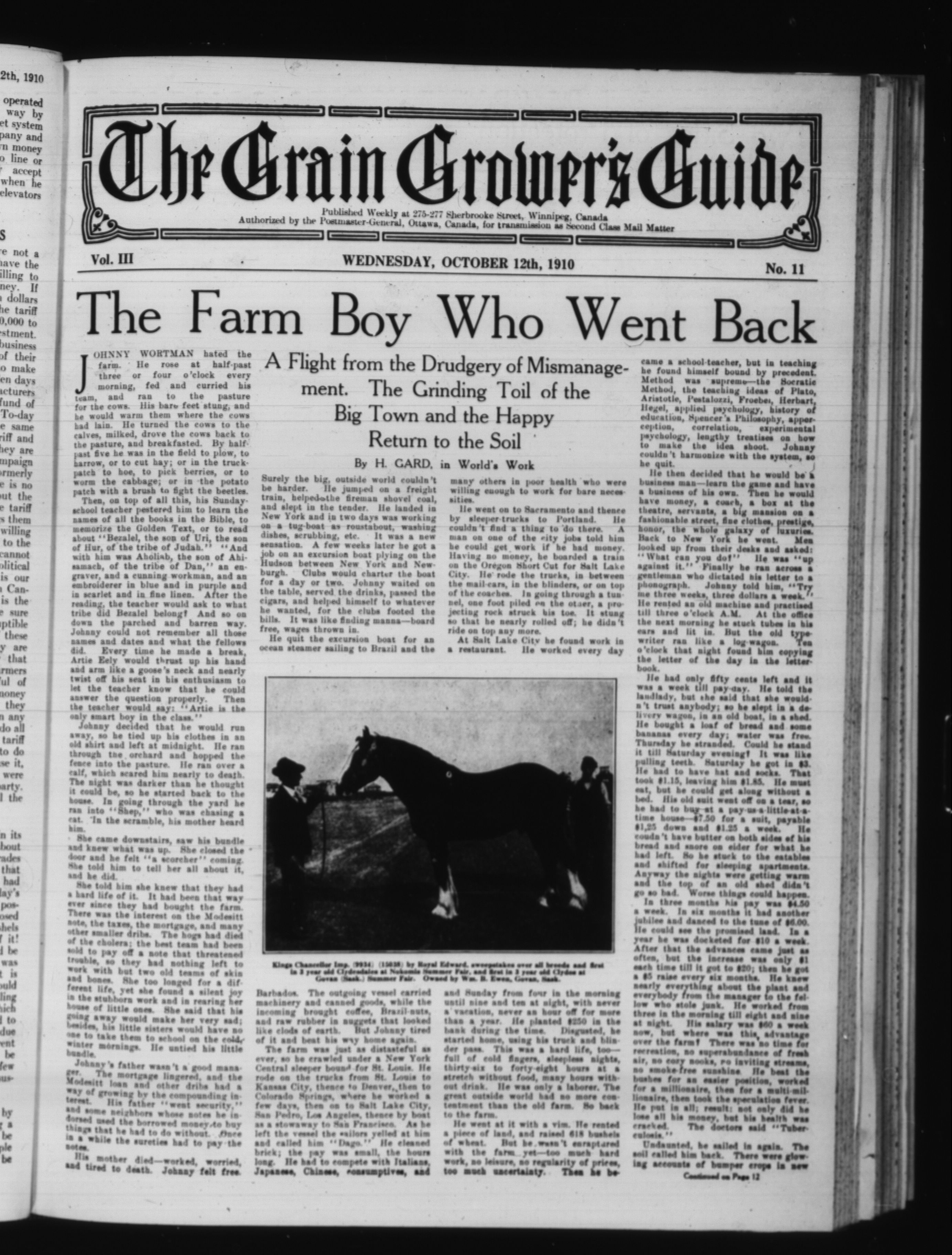 The Grain growers' guide : Vol. III, No. 11 (October 12, 1910)