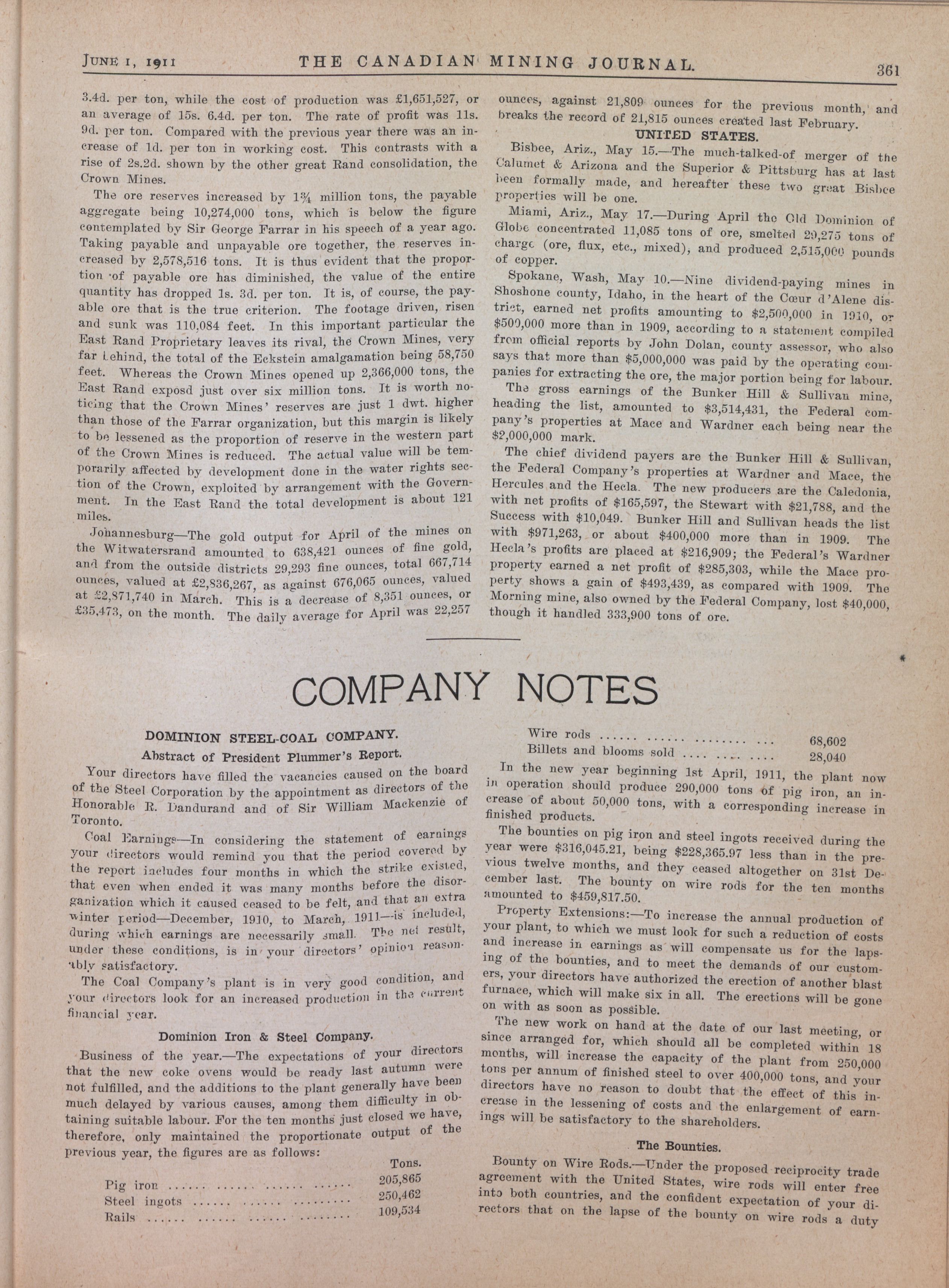 The Canadian Mining Journal : Vol. XXXII, No. 11 (June 1, 1911)