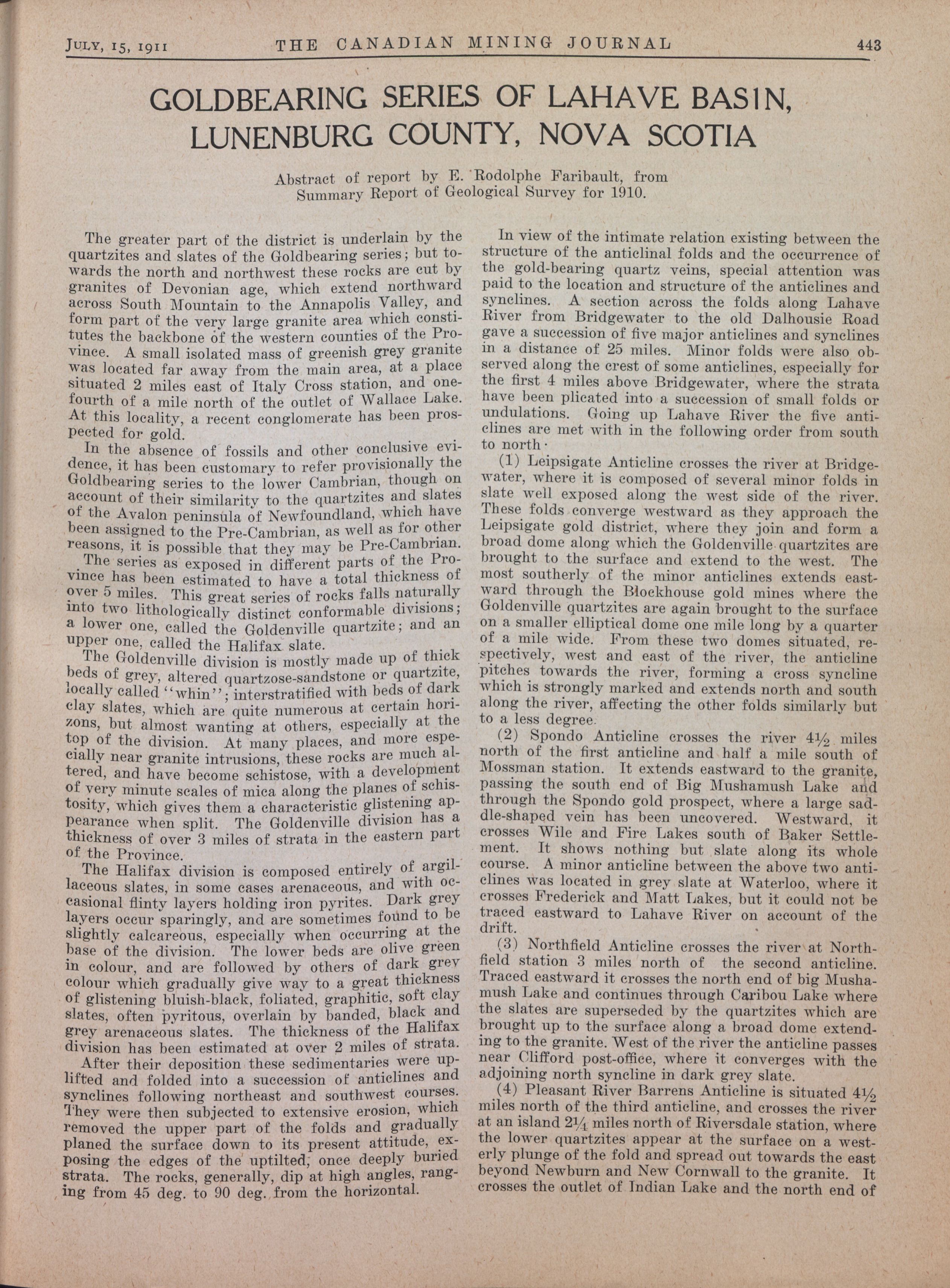 The Canadian Mining Journal : Vol. XXXII, No. 14 (July 15, 1911)