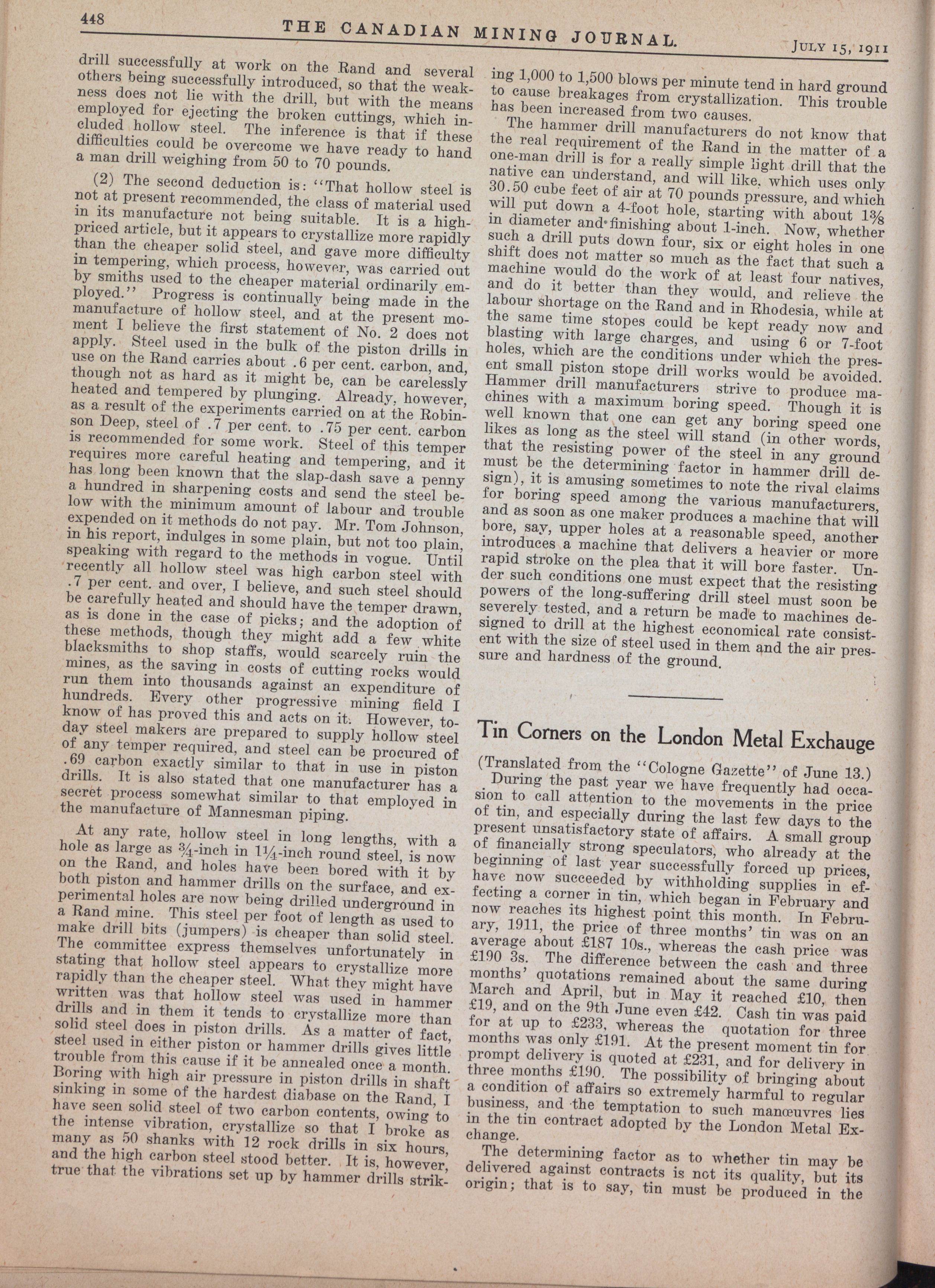 The Canadian Mining Journal : Vol. XXXII, No. 14 (July 15, 1911)