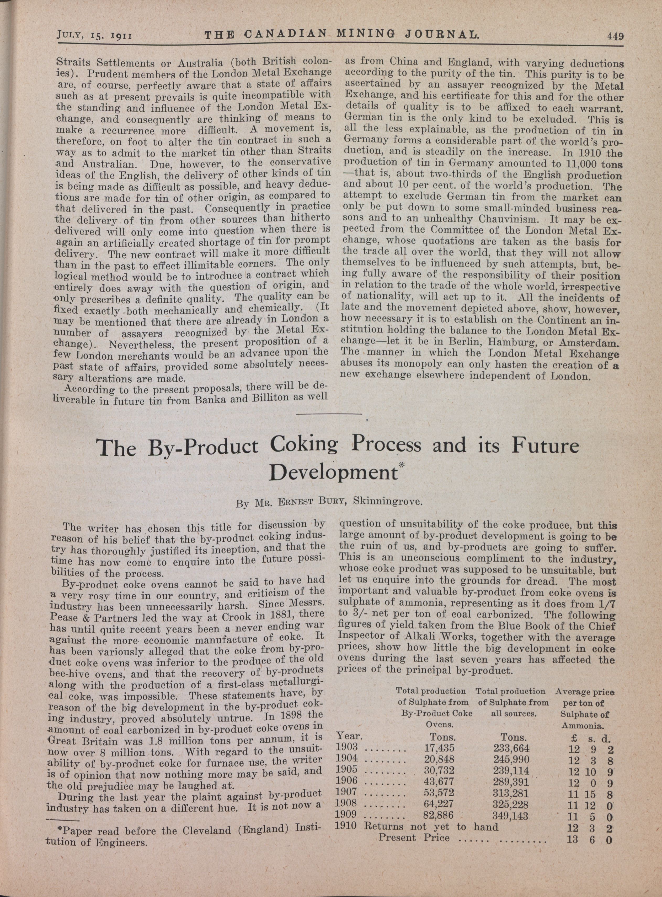 The Canadian Mining Journal : Vol. XXXII, No. 14 (July 15, 1911)