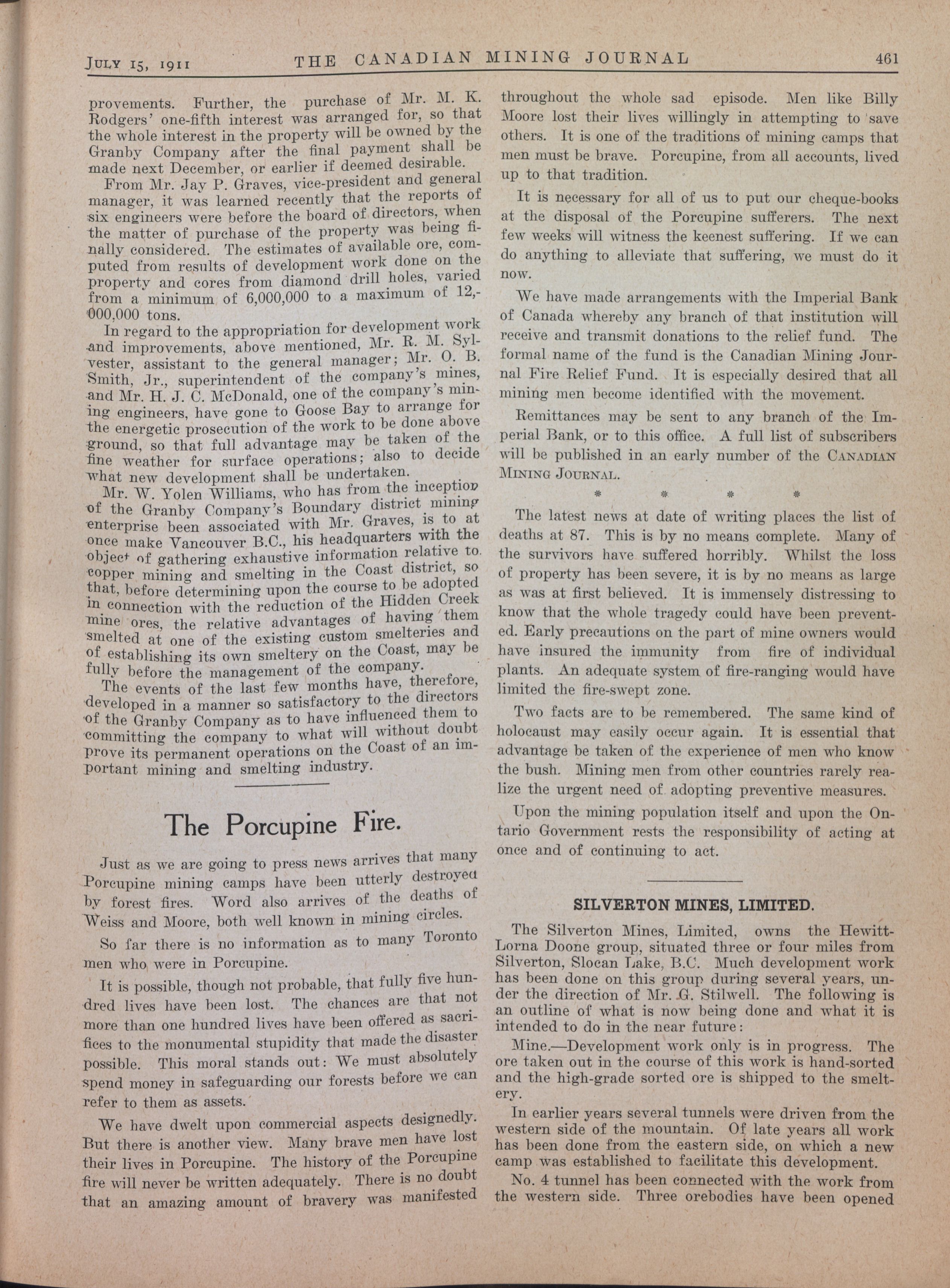 The Canadian Mining Journal : Vol. XXXII, No. 14 (July 15, 1911)
