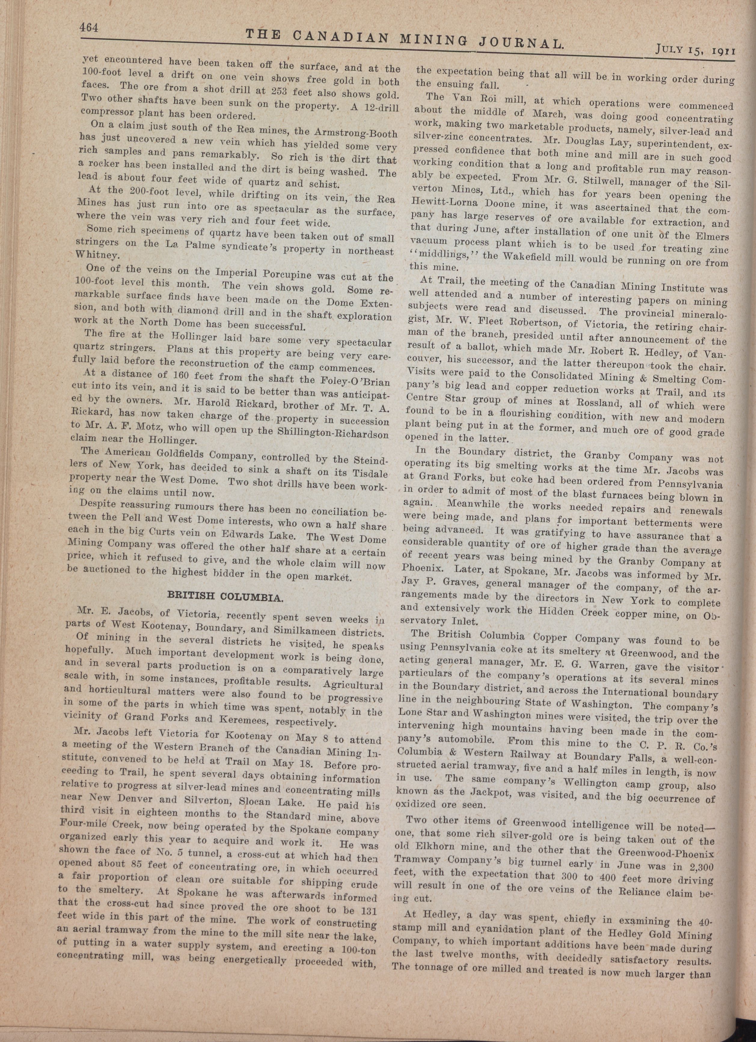 The Canadian Mining Journal : Vol. XXXII, No. 14 (July 15, 1911)