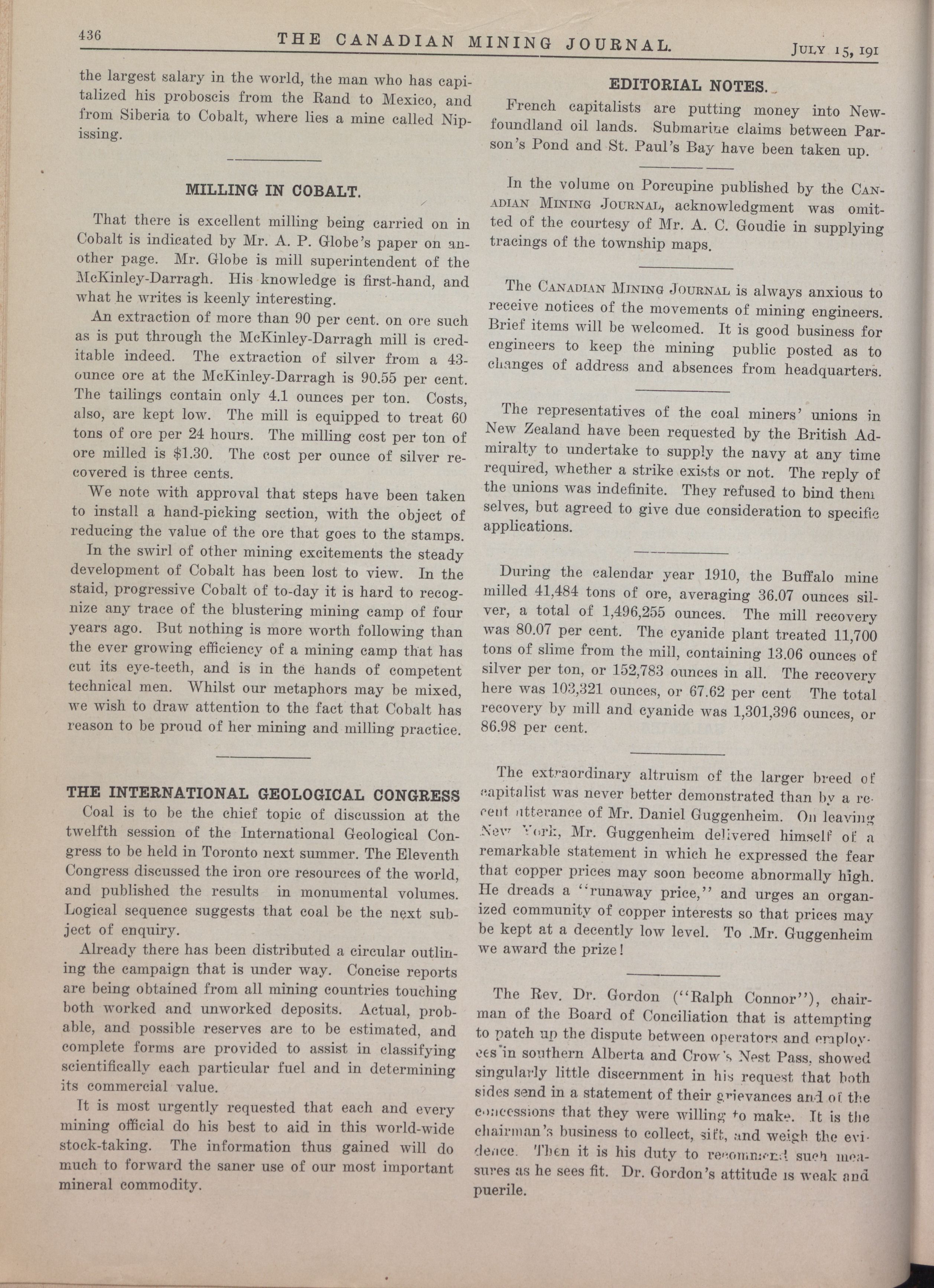 The Canadian Mining Journal : Vol. XXXII, No. 14 (July 15, 1911)