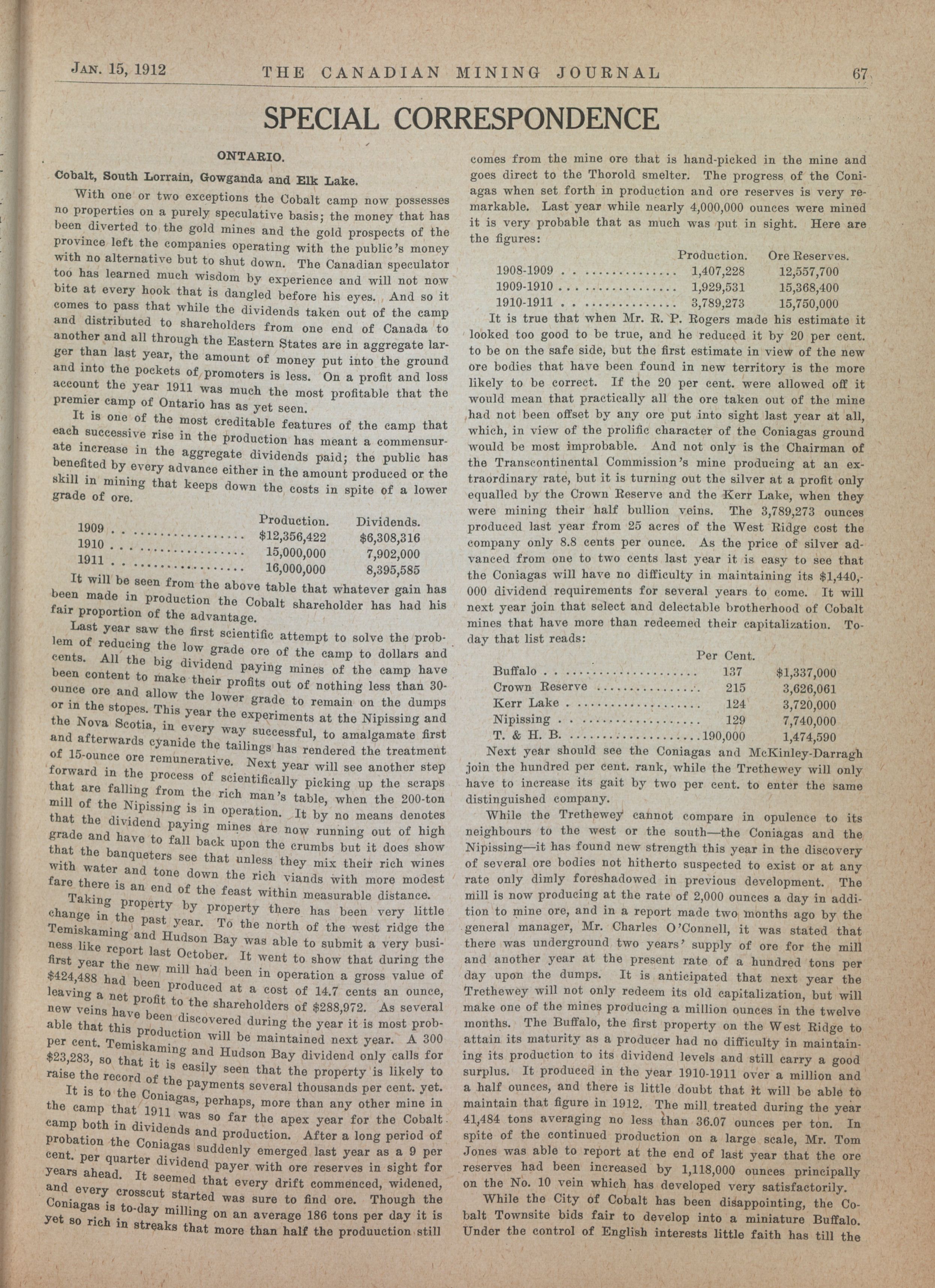 The Canadian Mining Journal : Vol. XXXIII, No. 2 (Jan. 15, 1912)