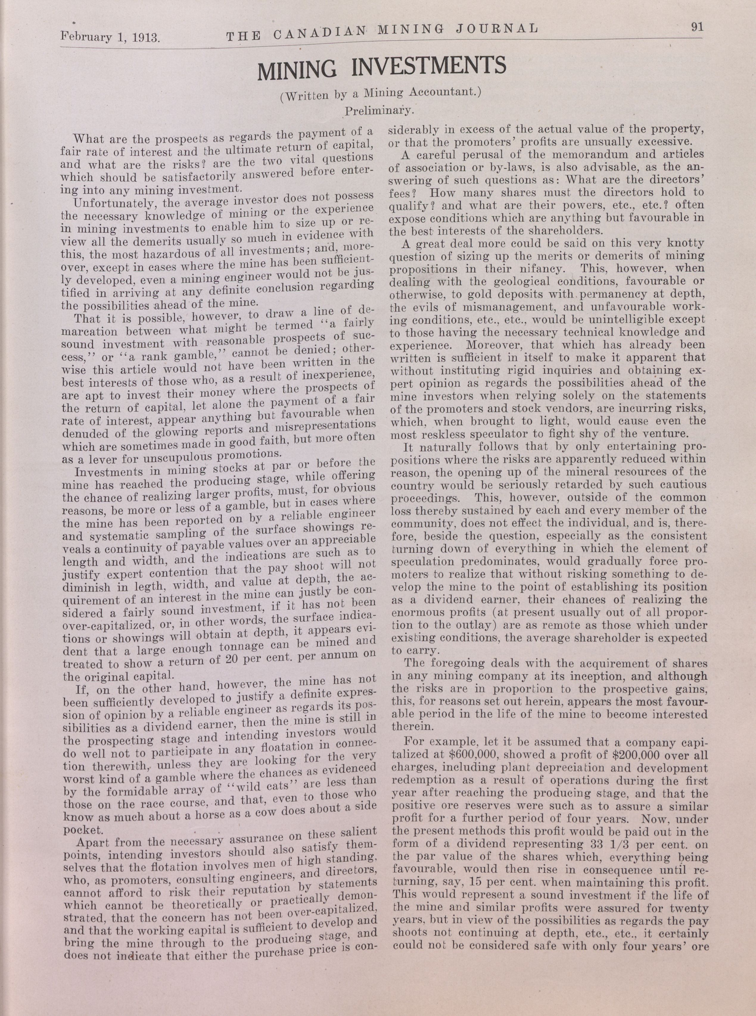 The Canadian Mining Journal : Vol. XXXIV, No. 3 (February 1, 1913)
