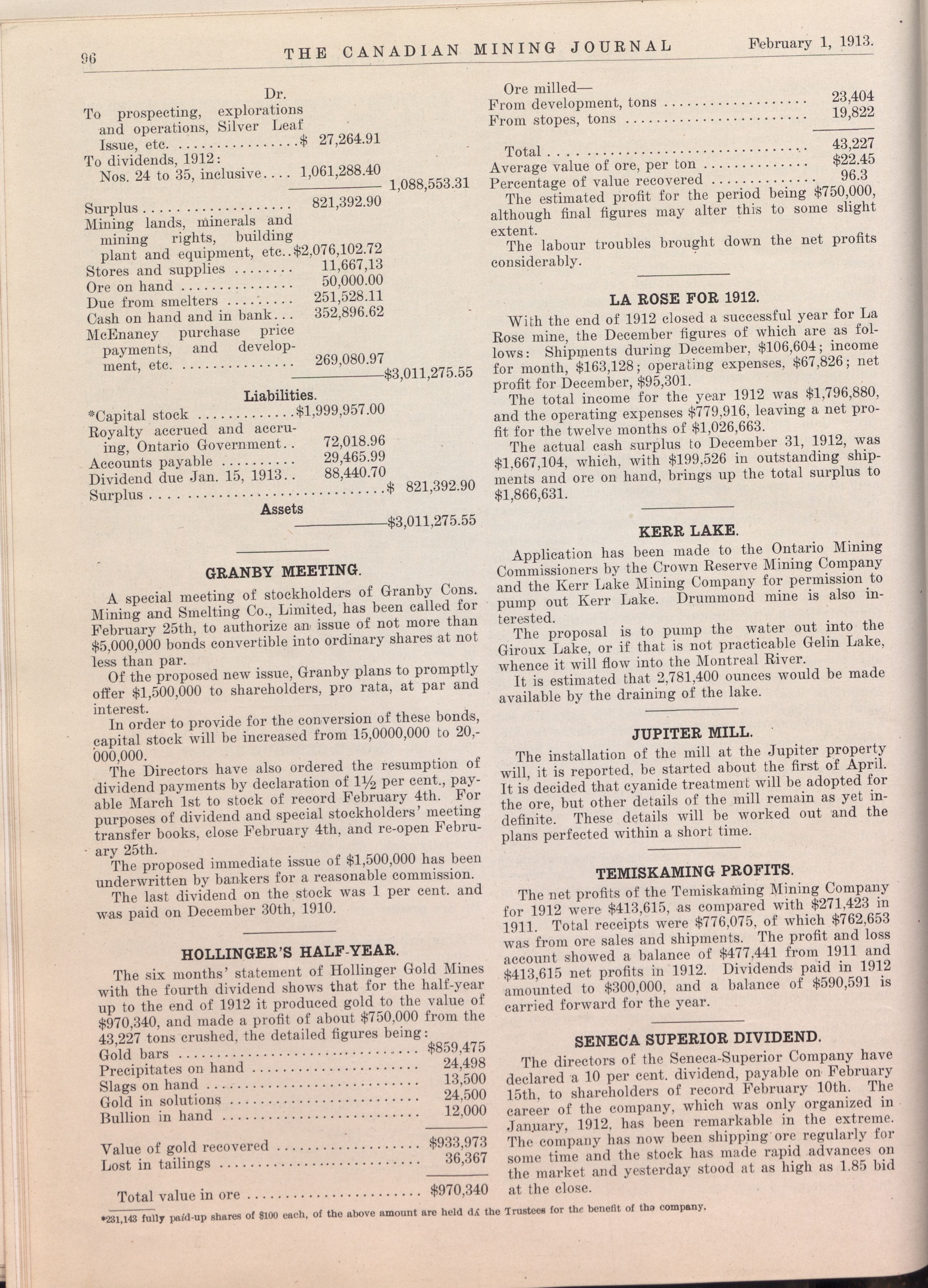 The Canadian Mining Journal : Vol. XXXIV, No. 3 (February 1, 1913)