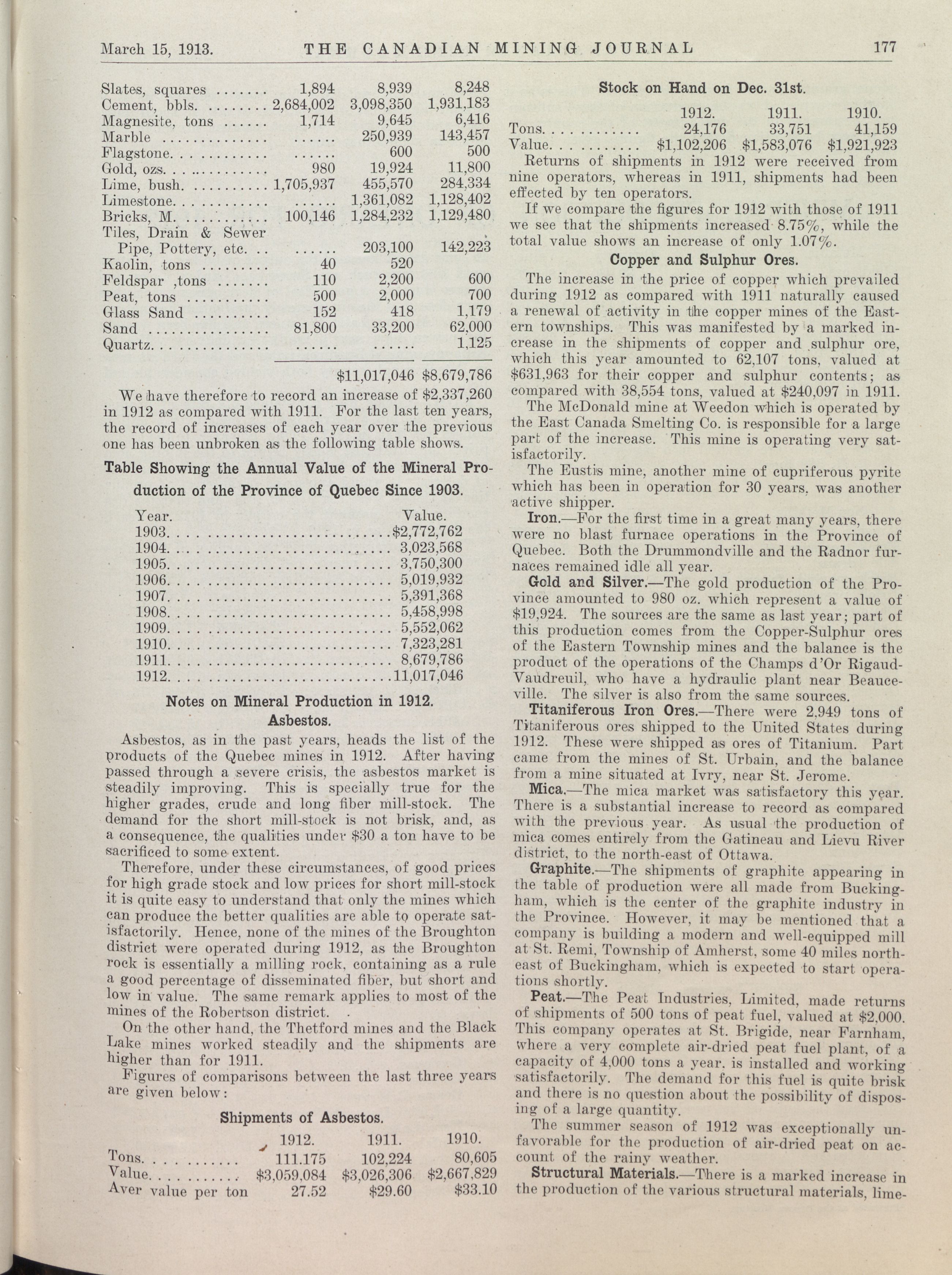 The Canadian Mining Journal : Vol. XXXIV, No. 6 (March 15, 1913)