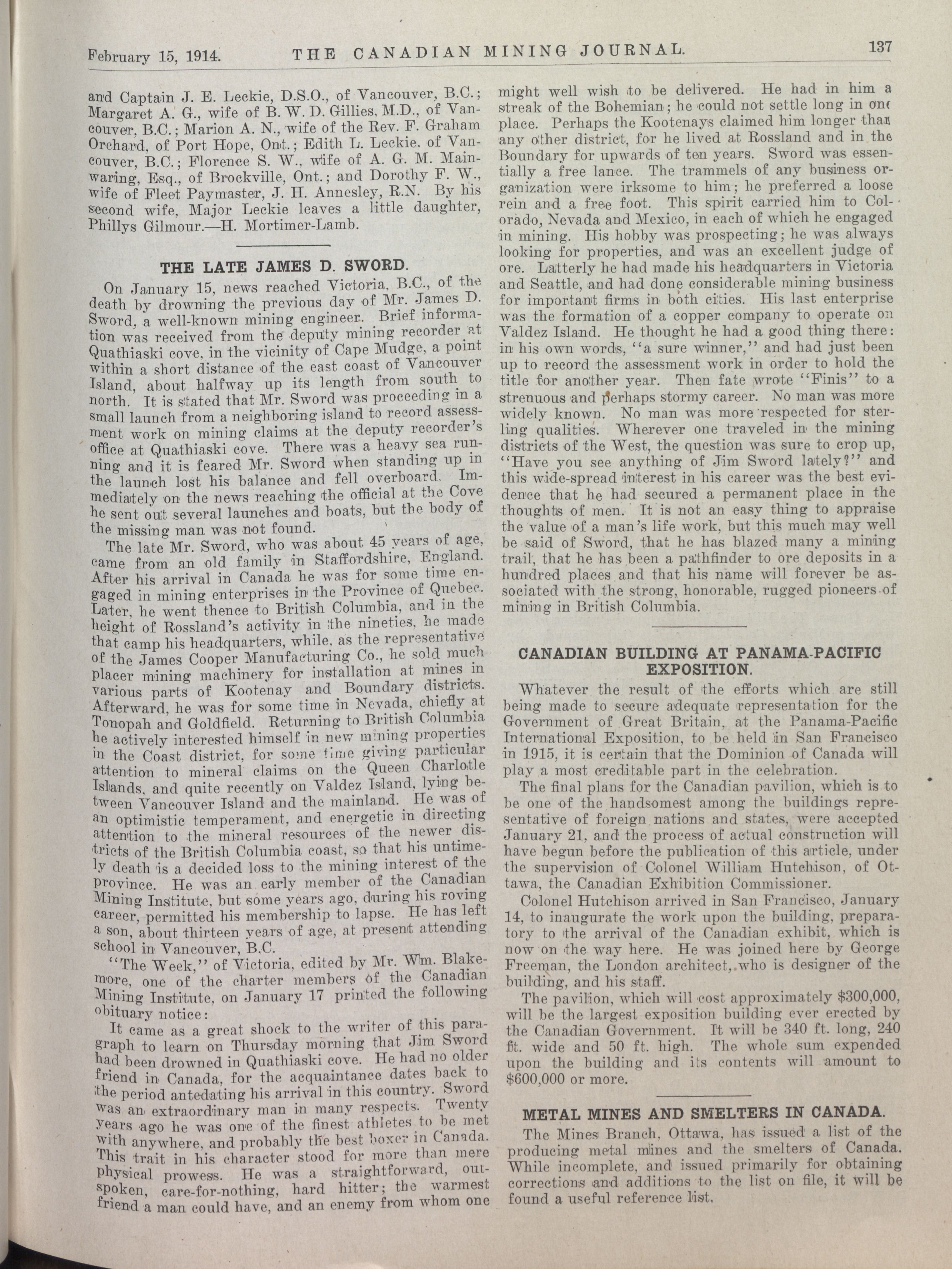 The Canadian Mining Journal : Vol. XXXV, No. 4 (February 15, 1914)