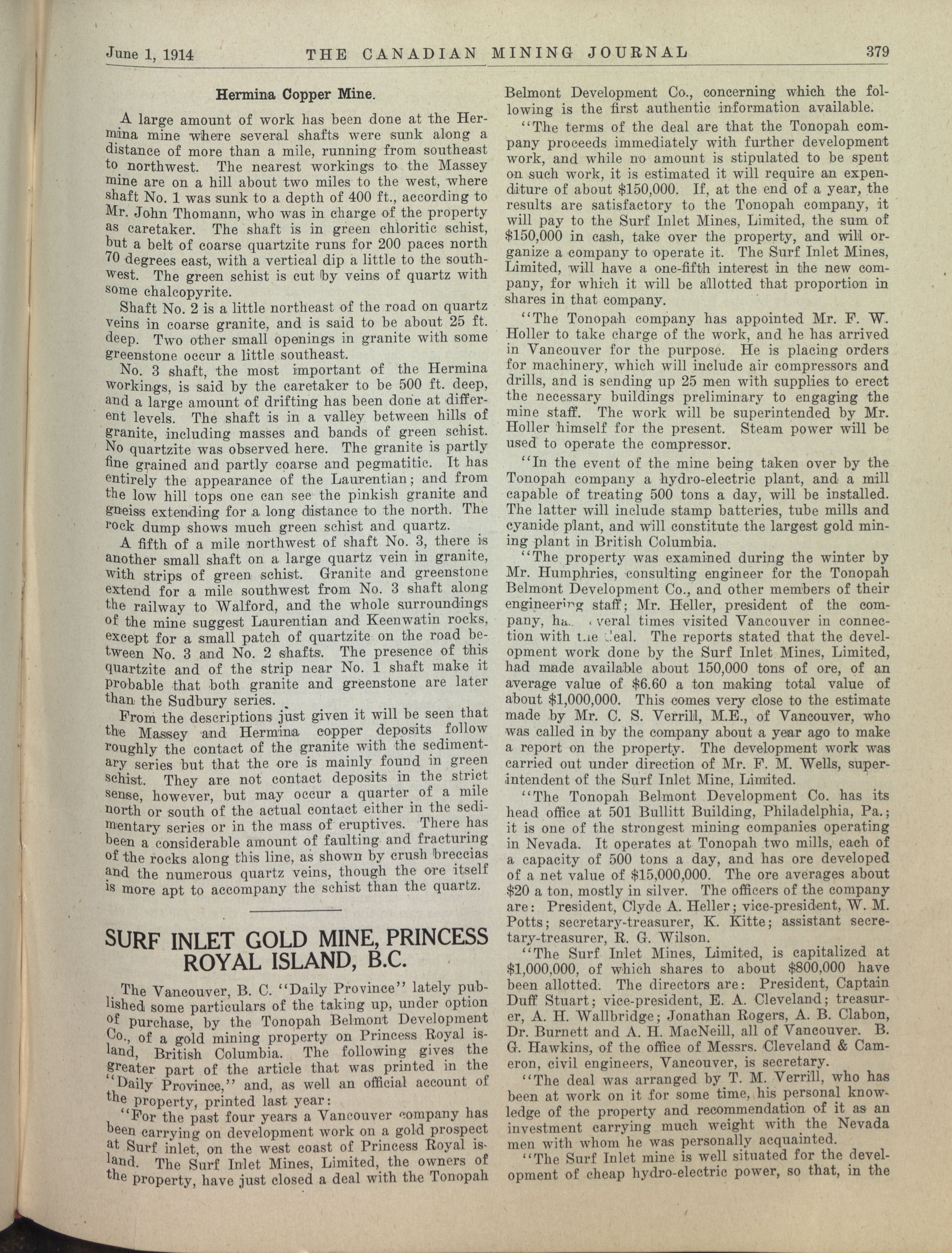 The Canadian Mining Journal : Vol. XXXV, No. 11 (June 1, 1914)