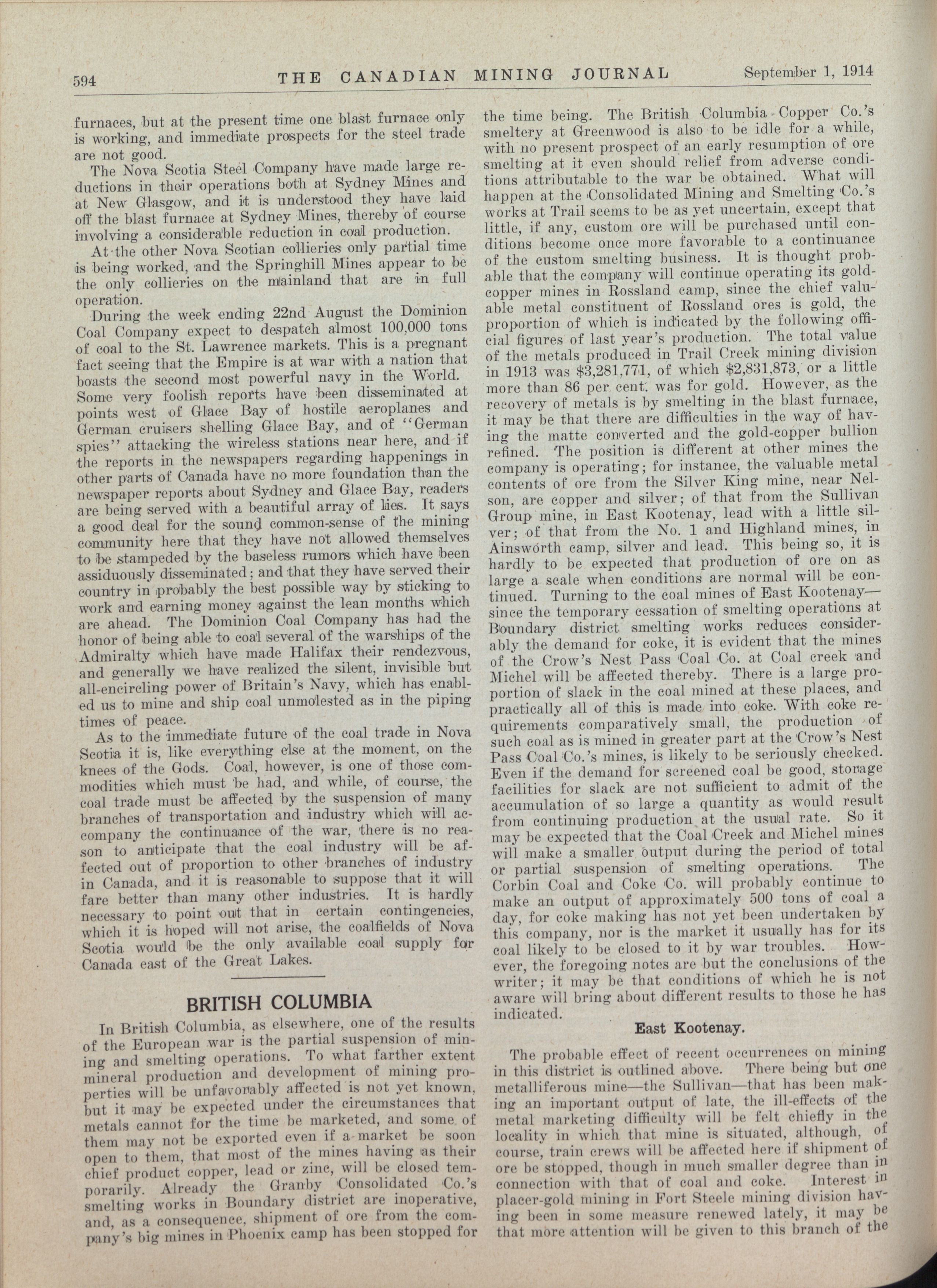 The Canadian Mining Journal : Vol. XXXV, No. 17 (September 1, 1914)