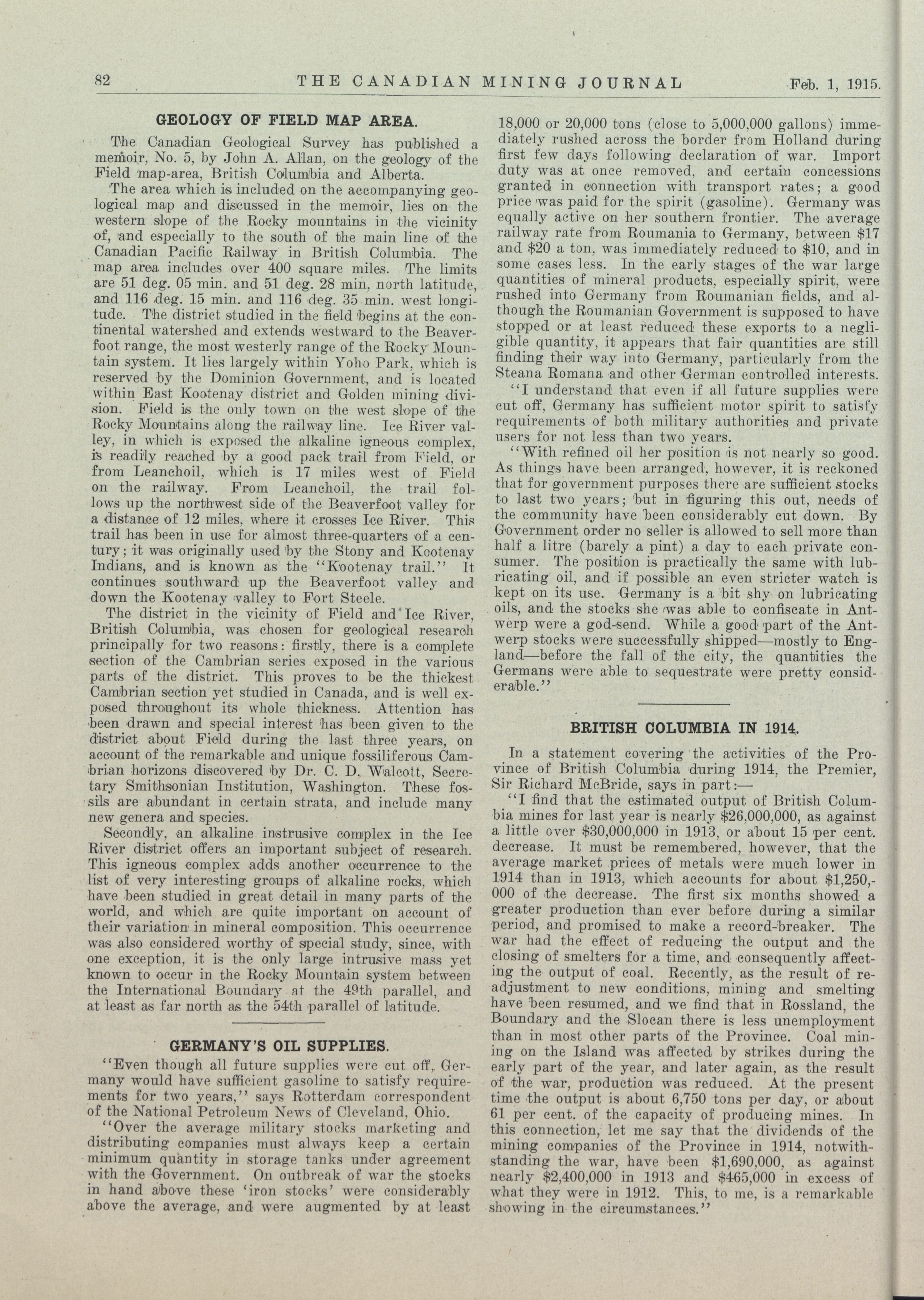 The Canadian Mining Journal : Vol. XXXVI, No. 3 (February 1, 1915)