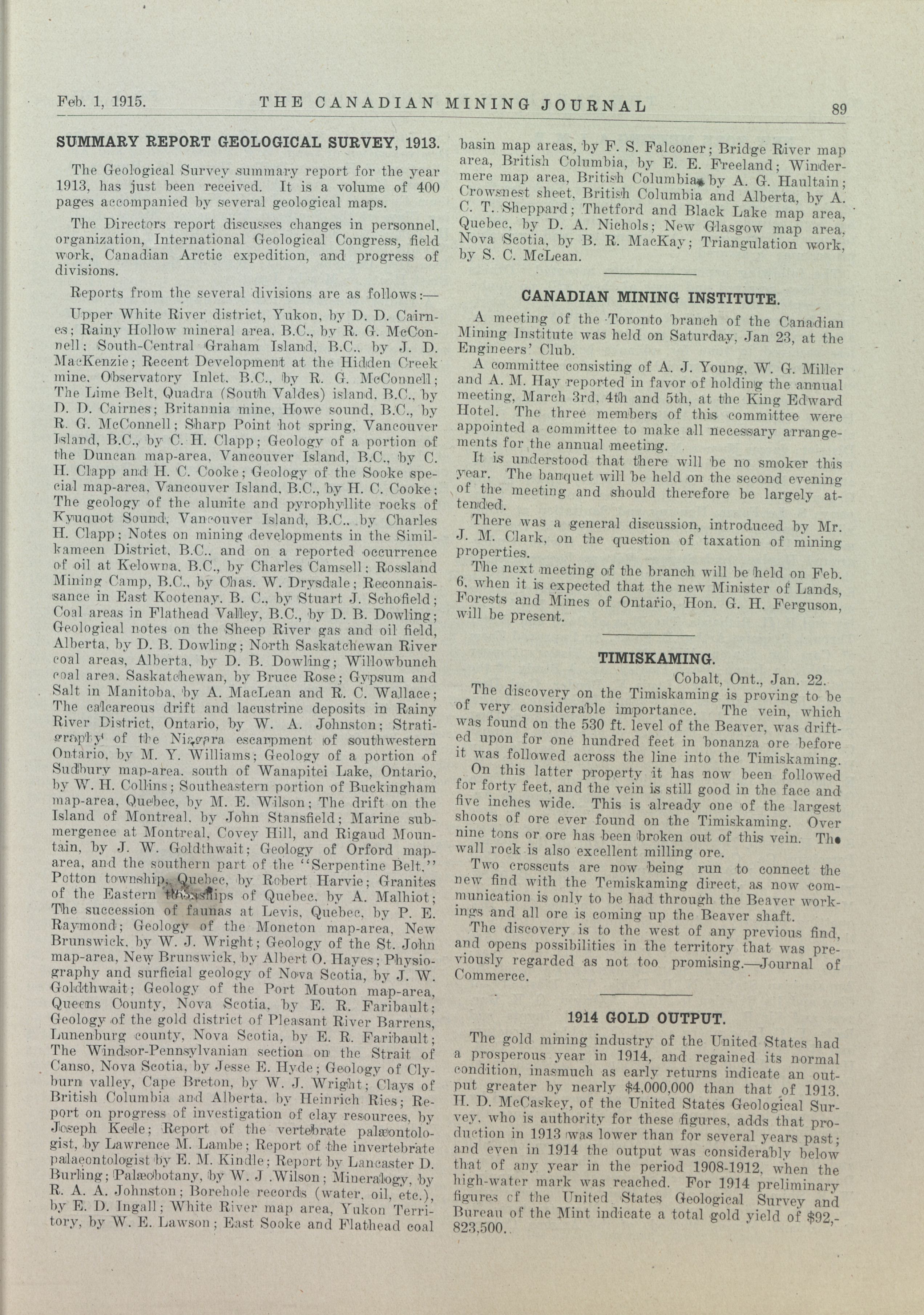 The Canadian Mining Journal : Vol. XXXVI, No. 3 (February 1, 1915)