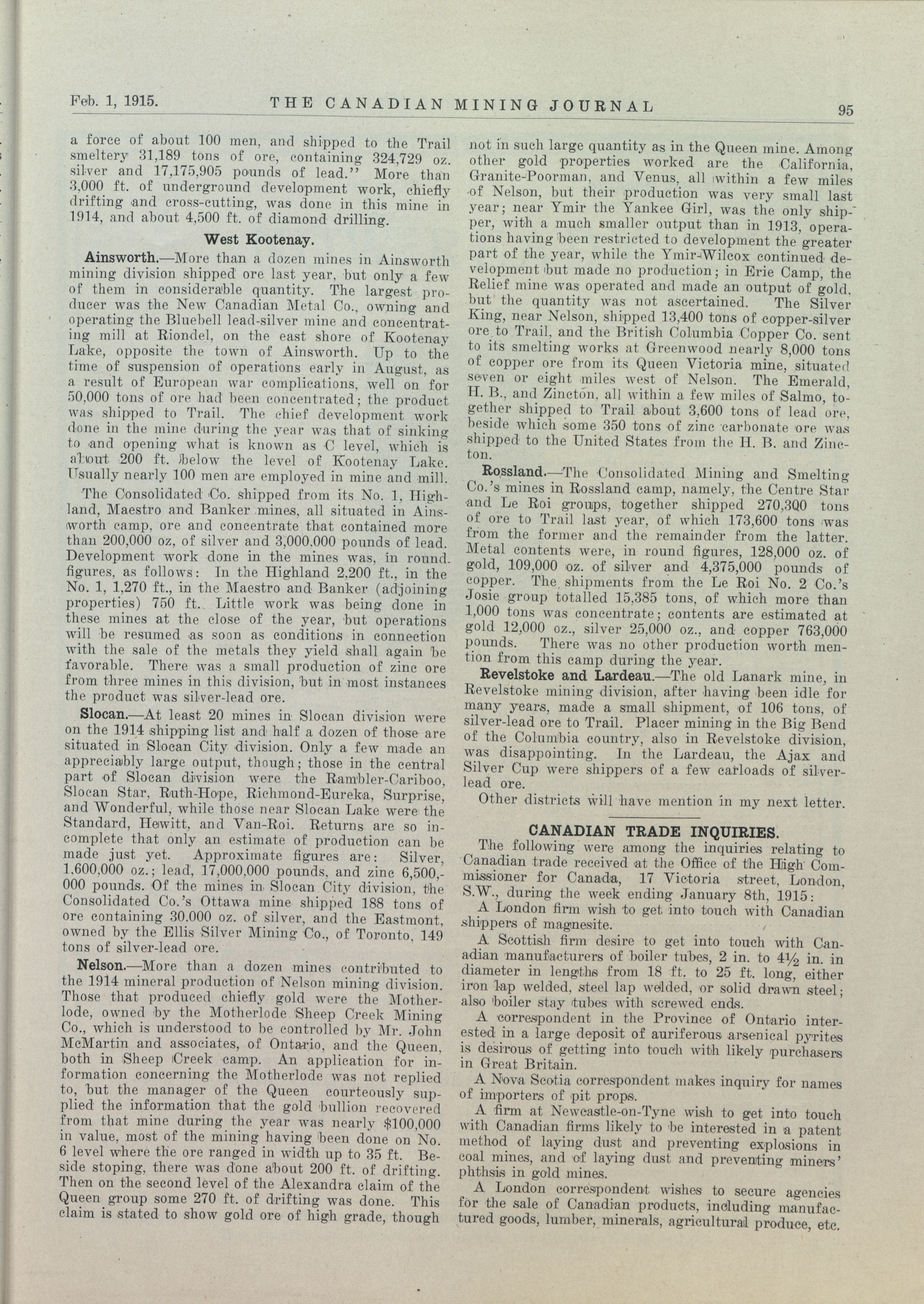 The Canadian Mining Journal : Vol. XXXVI, No. 3 (February 1, 1915)
