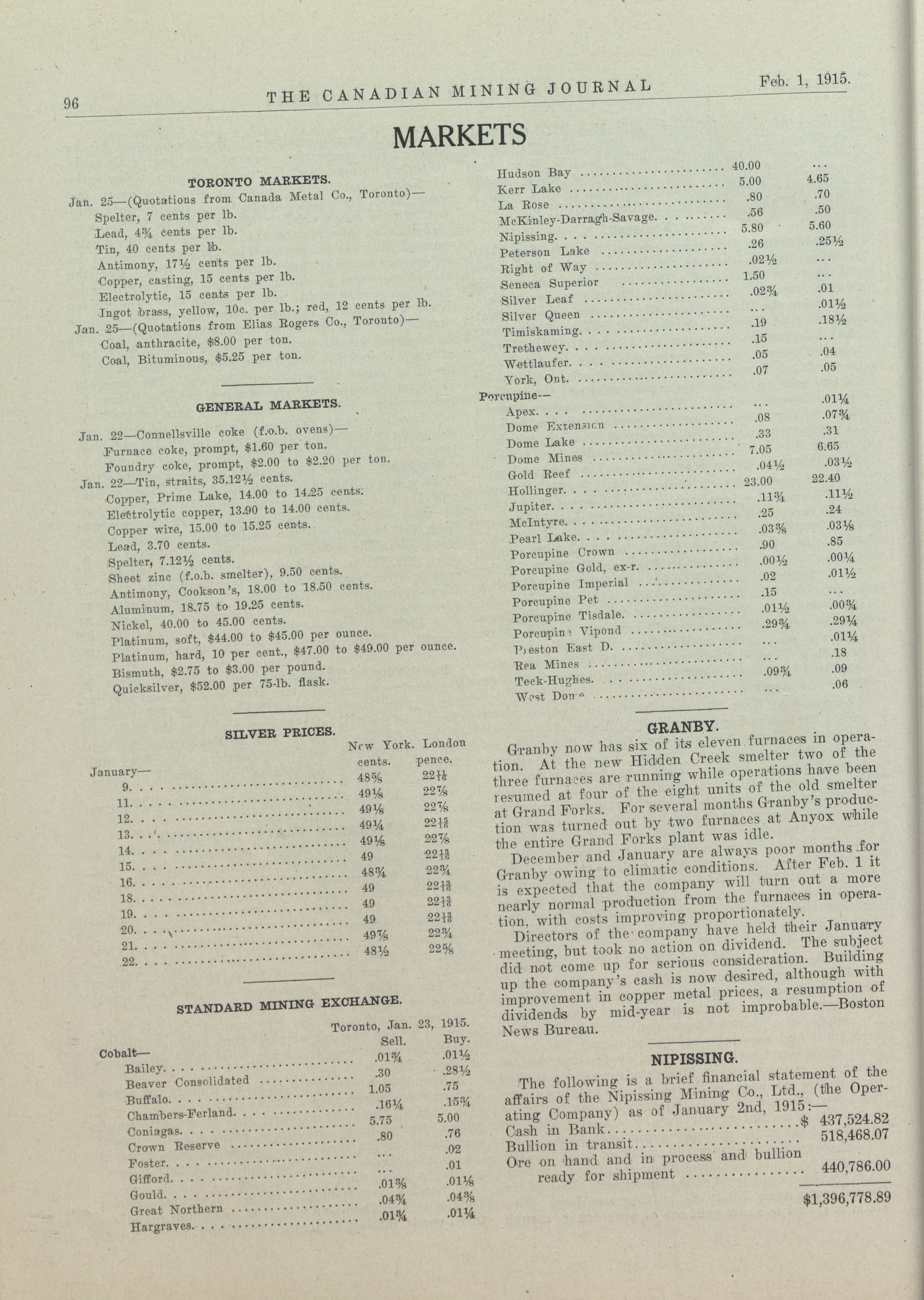 The Canadian Mining Journal : Vol. XXXVI, No. 3 (February 1, 1915)