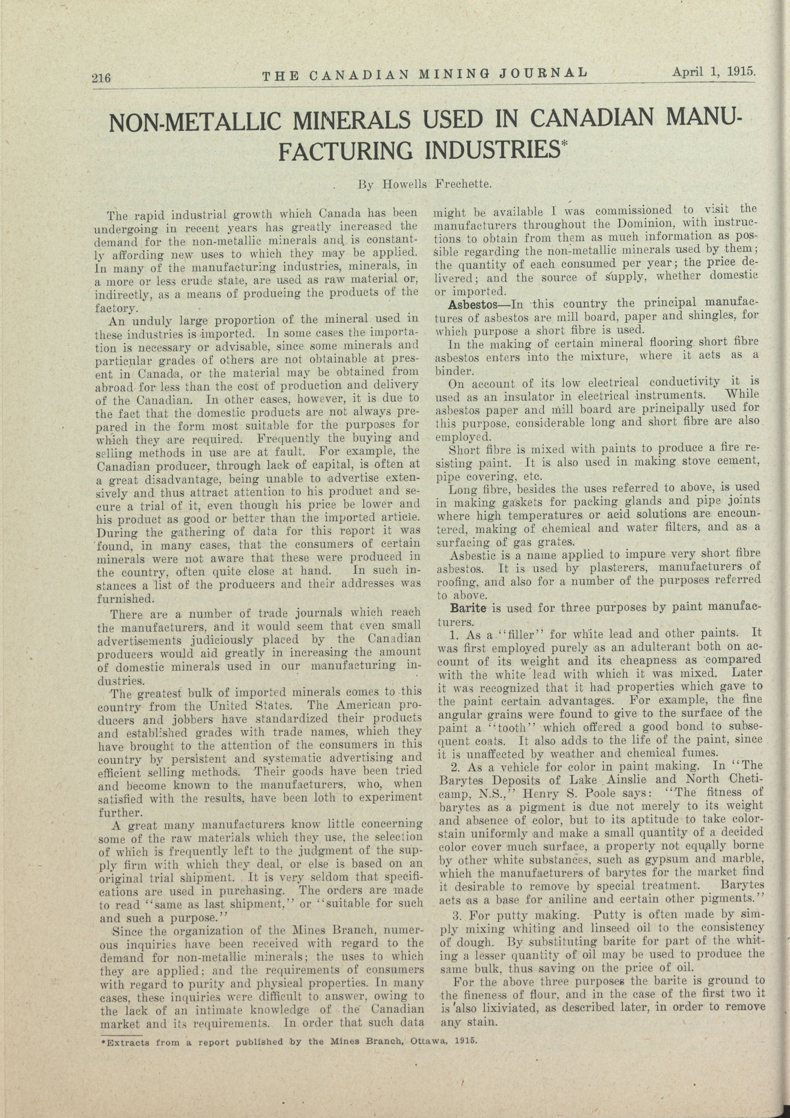 The Canadian Mining Journal : Vol. XXXVI, No. 7 (April 1, 1915)