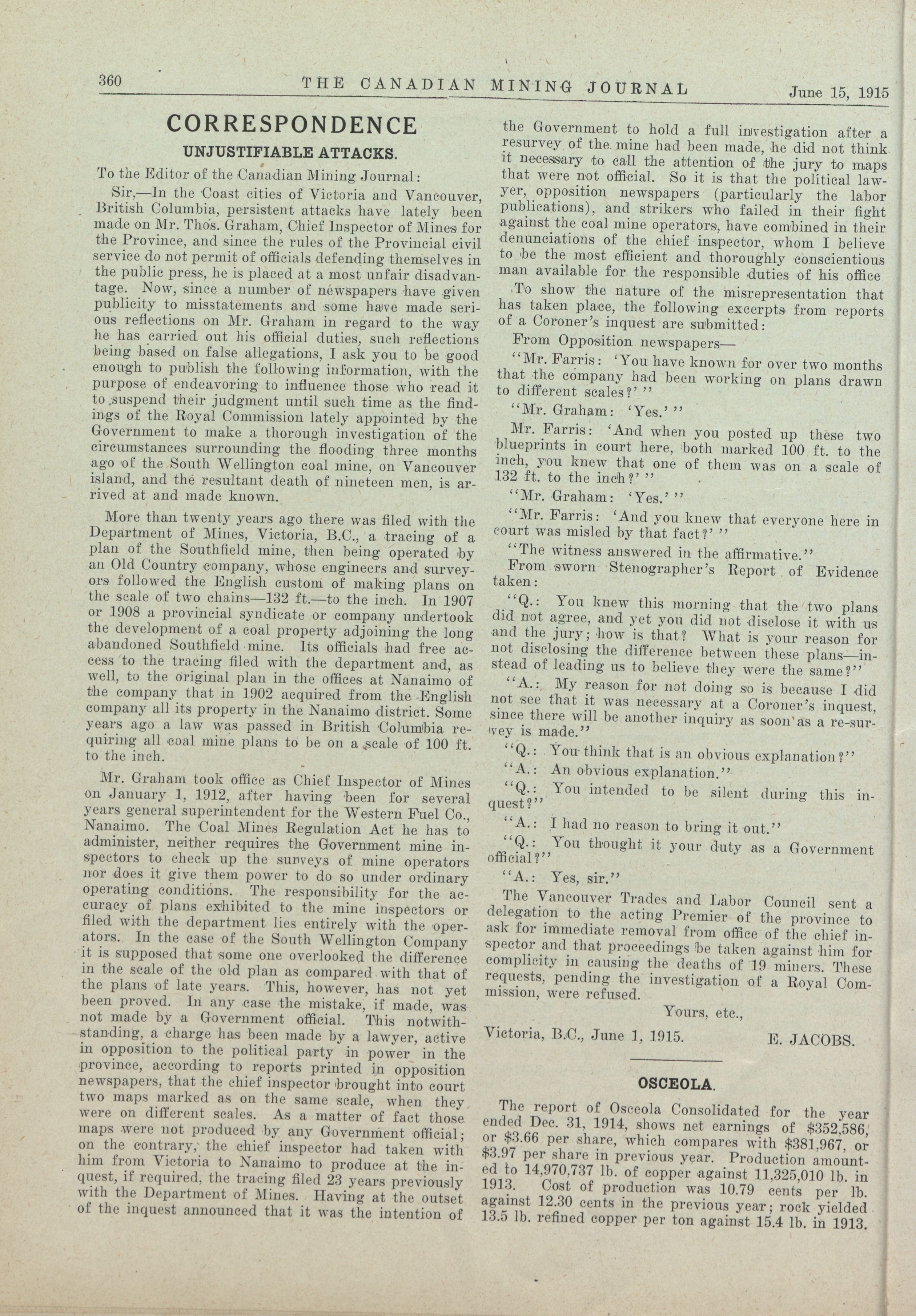 The Canadian Mining Journal : Vol. XXXVI, No. 12 (June 15, 1915)