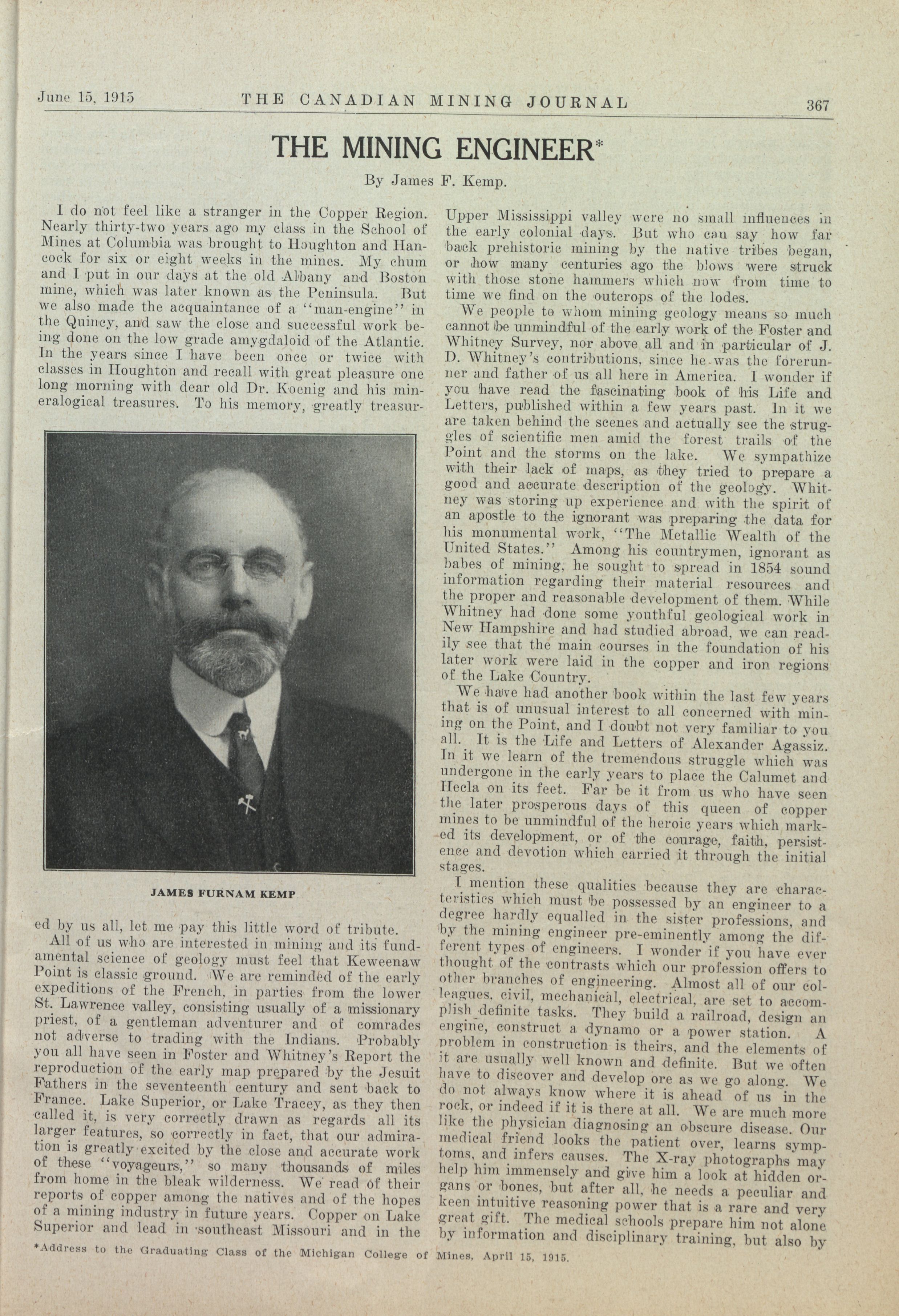 The Canadian Mining Journal : Vol. XXXVI, No. 12 (June 15, 1915)