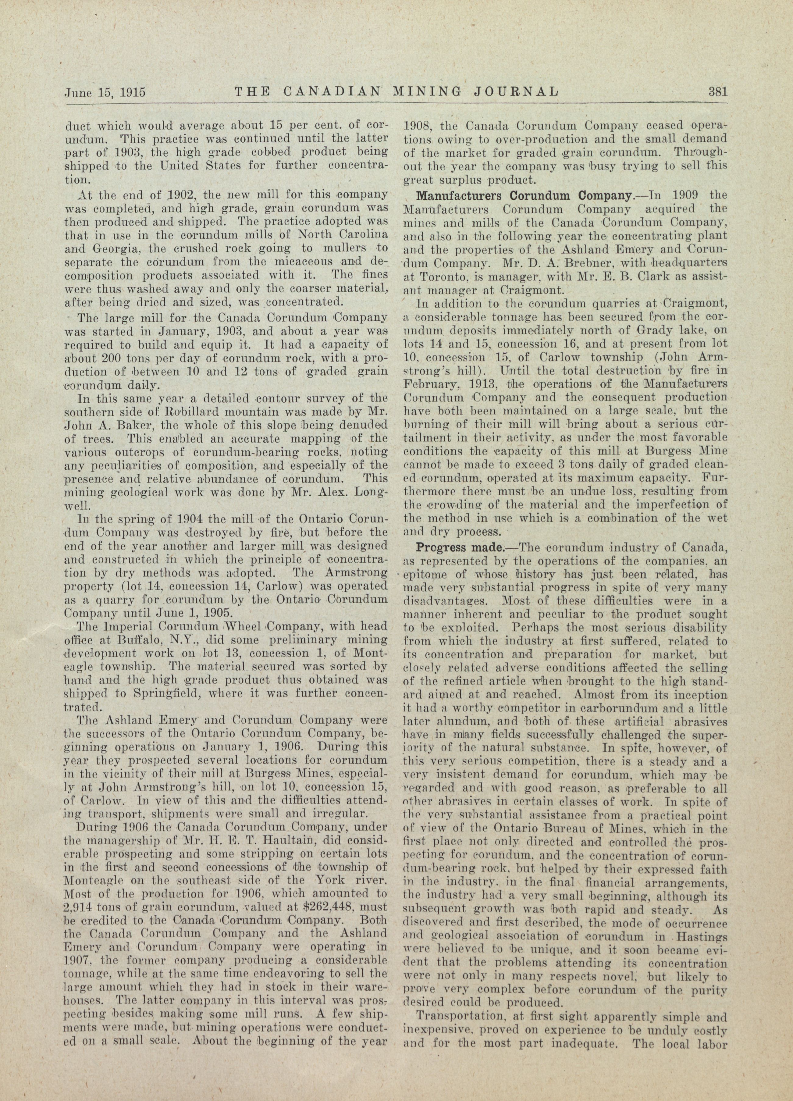 The Canadian Mining Journal : Vol. XXXVI, No. 12 (June 15, 1915)