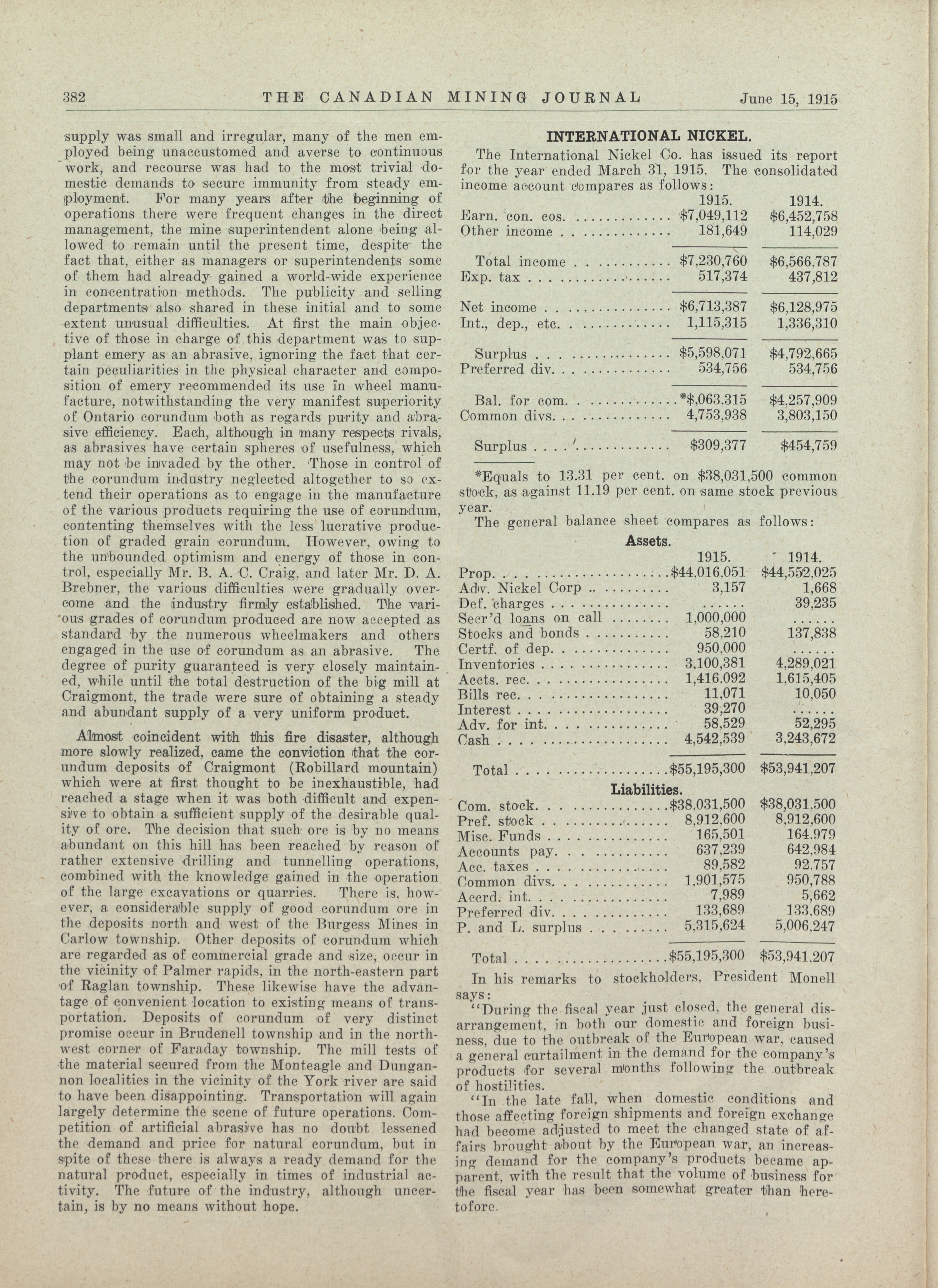 The Canadian Mining Journal : Vol. XXXVI, No. 12 (June 15, 1915)