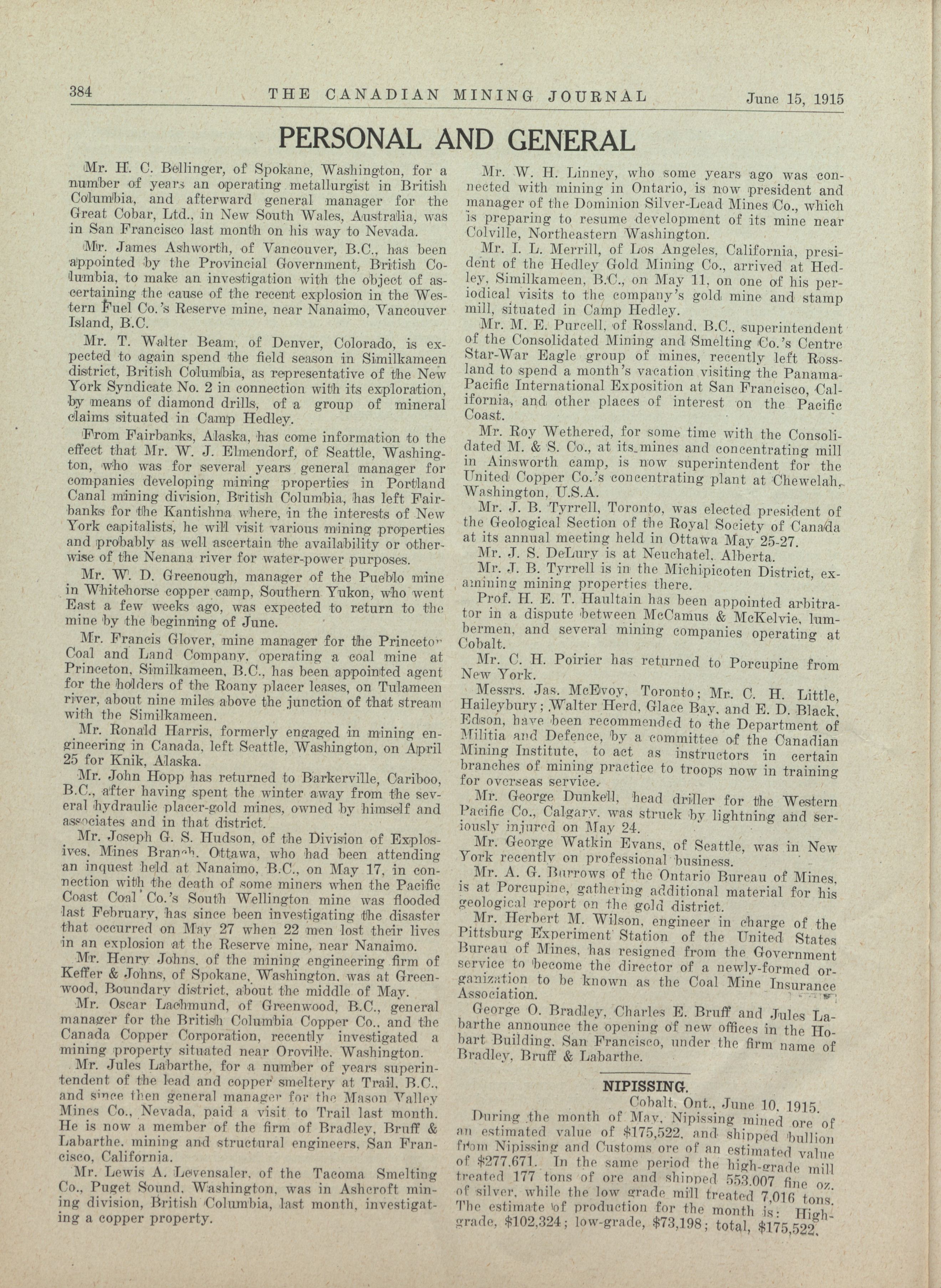The Canadian Mining Journal : Vol. XXXVI, No. 12 (June 15, 1915)