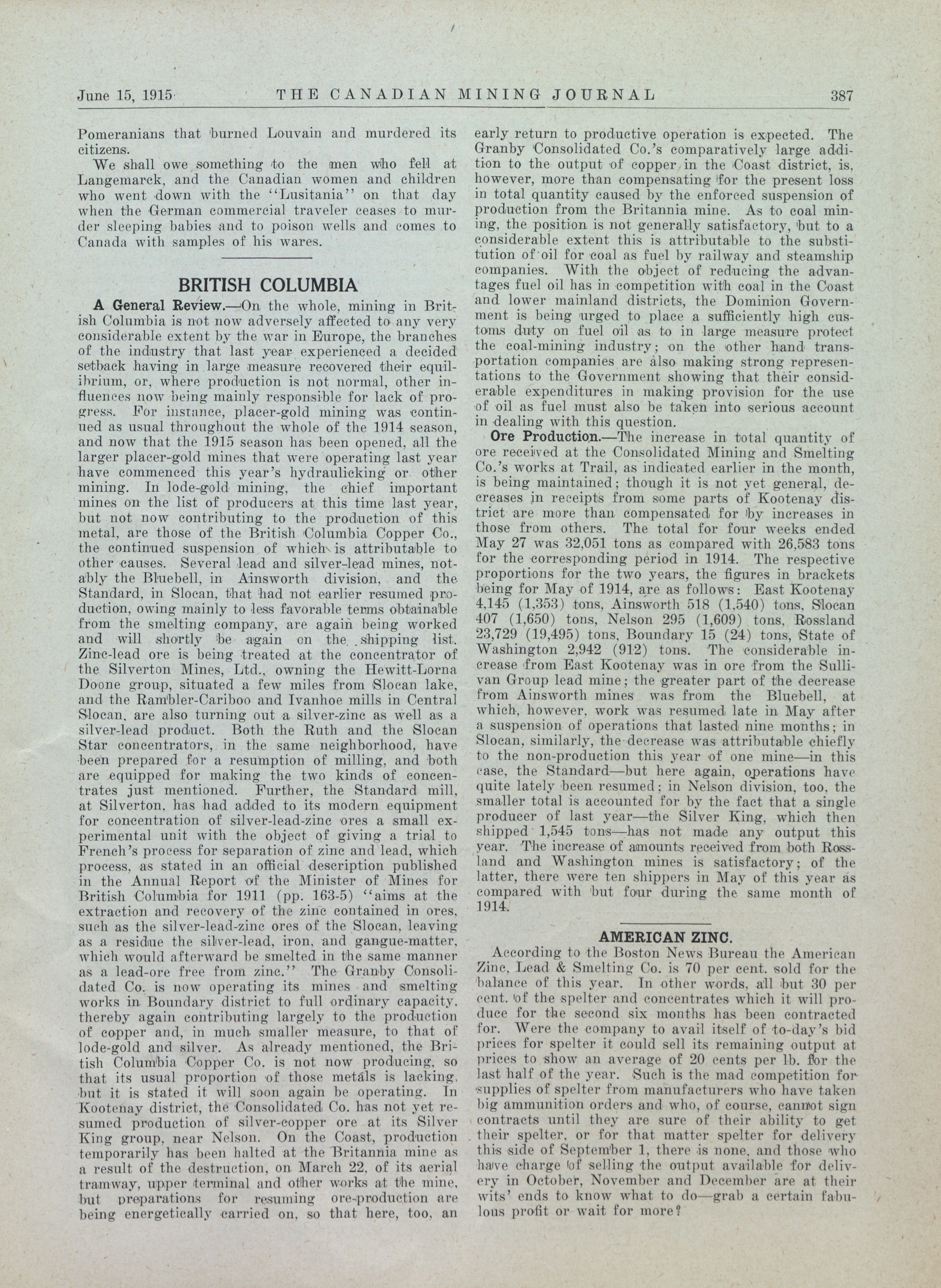 The Canadian Mining Journal : Vol. XXXVI, No. 12 (June 15, 1915)